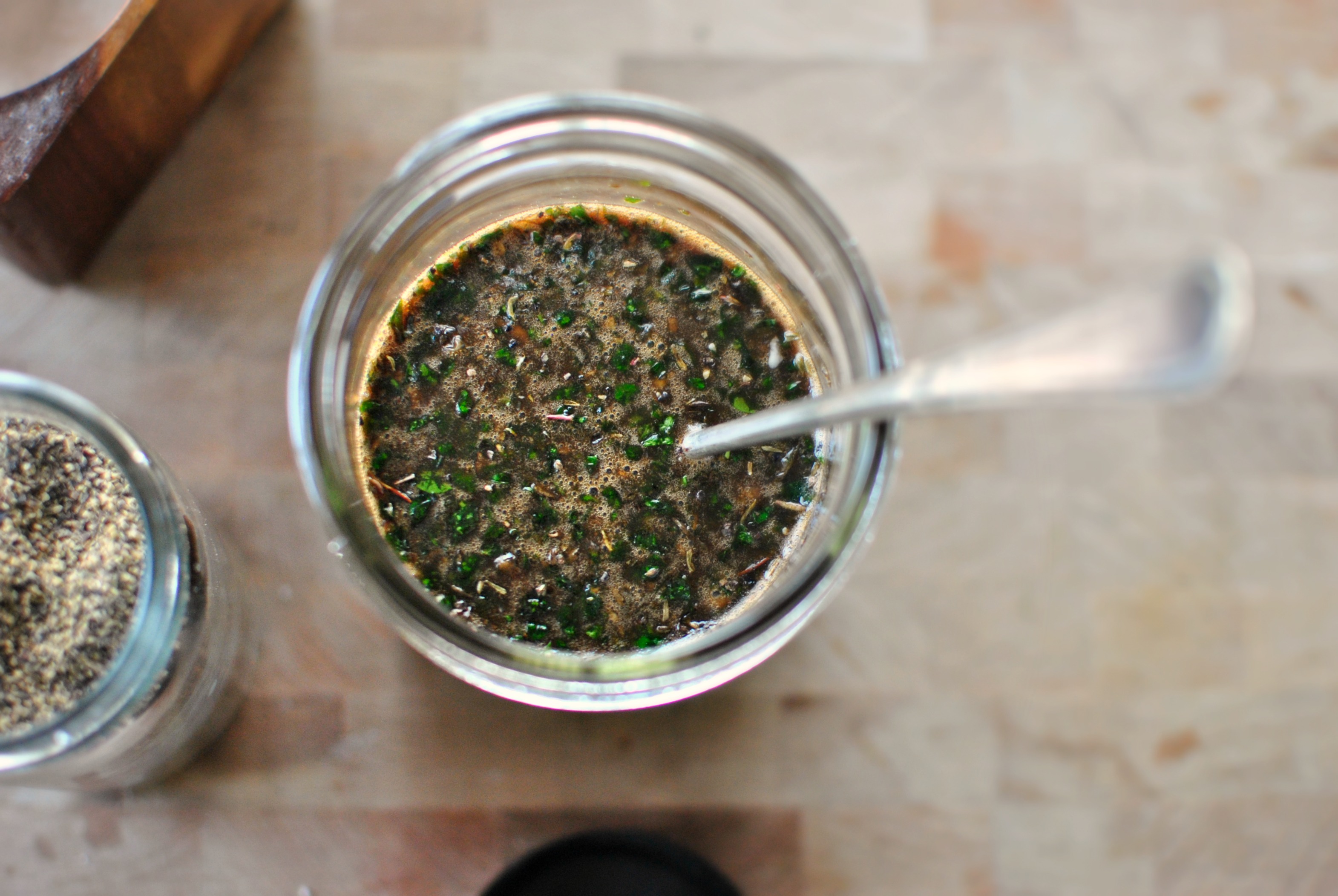 - Pour the salad dressing into a glass jar, season with kosher salt and black pepper. Place the lid on the jar and store it into the fridge until you are ready to use.