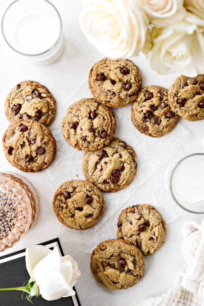 I have one friend who is vegan and another who is gluten free so I tested this chocolate chip cookie recipe several times until I felt it was perfect. They went over SO WELL! I’ve been making chocolate chip cookies since middle school, and I’m neither gf or vegan and I love the texture and flavor of these cookies.