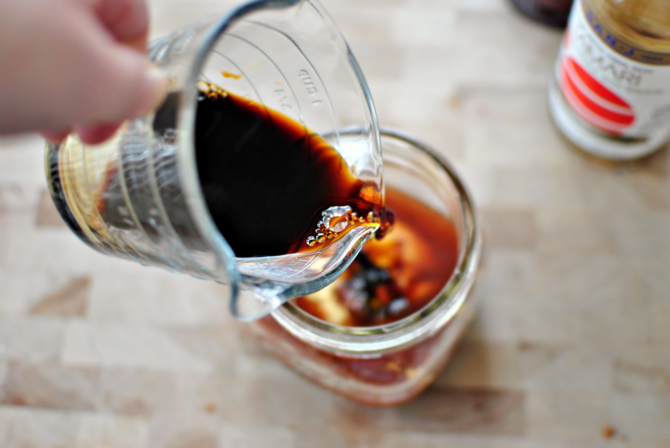 And a quarter cup of Tamari {or a low-sodium gluten-free soy sauce} and pour that into the jar as well.