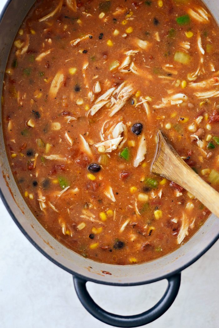 Serve this healthy southwest chicken soup ladled into bowls and topped with sliced avocado, cilantro and tortilla strips – if desired.