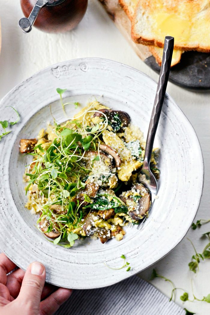 Enjoy! And if you give this Healthy Spinach and Mushroom Scramble recipe a try, let me know! Snap a photo and tag me on twitter or instagram!