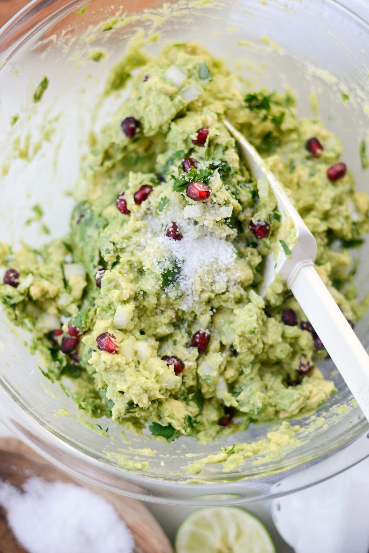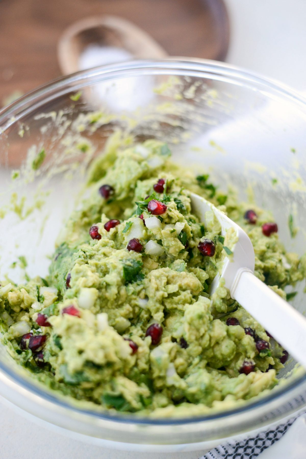 - Fold in the onion, cilantro, pomegranate and salt.