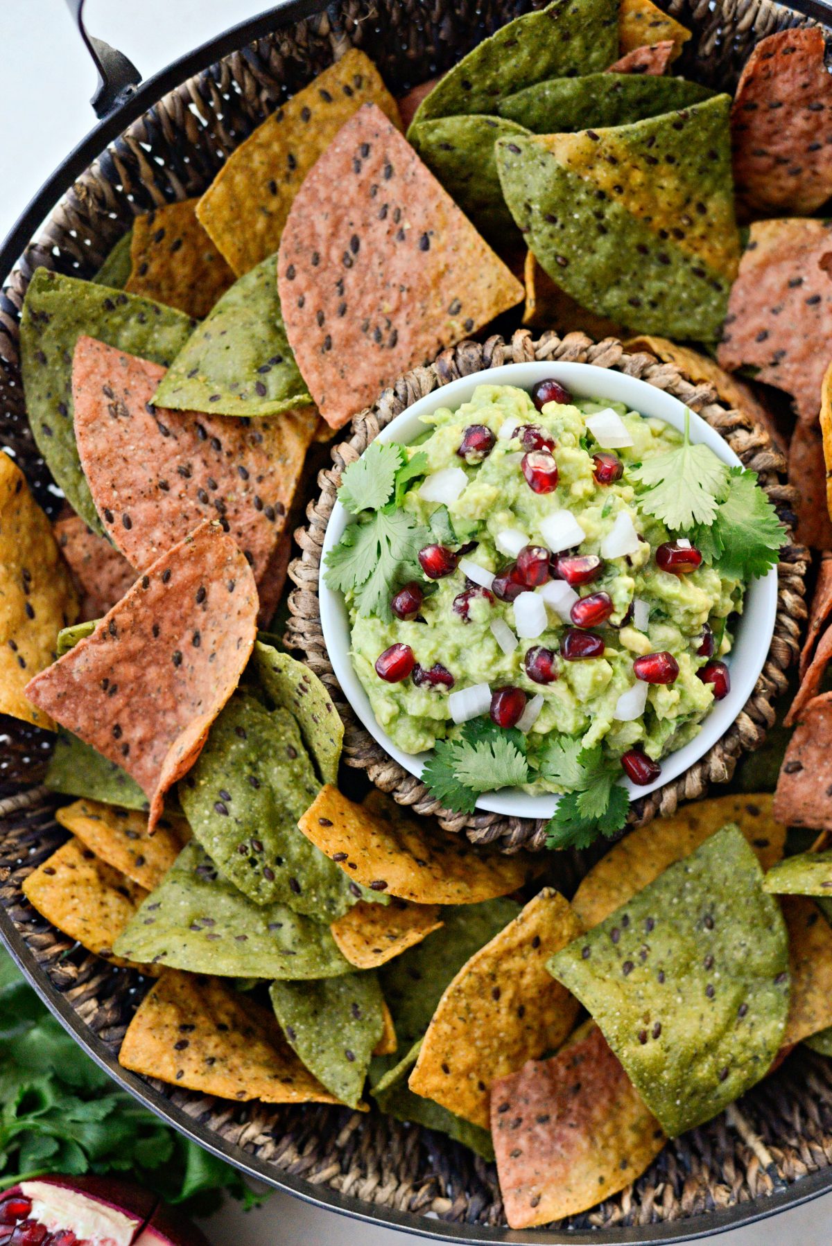 Sweet tart burst of pomegranate with the bite of the onion and creamy cool guac is a match made in guacamole heaven.