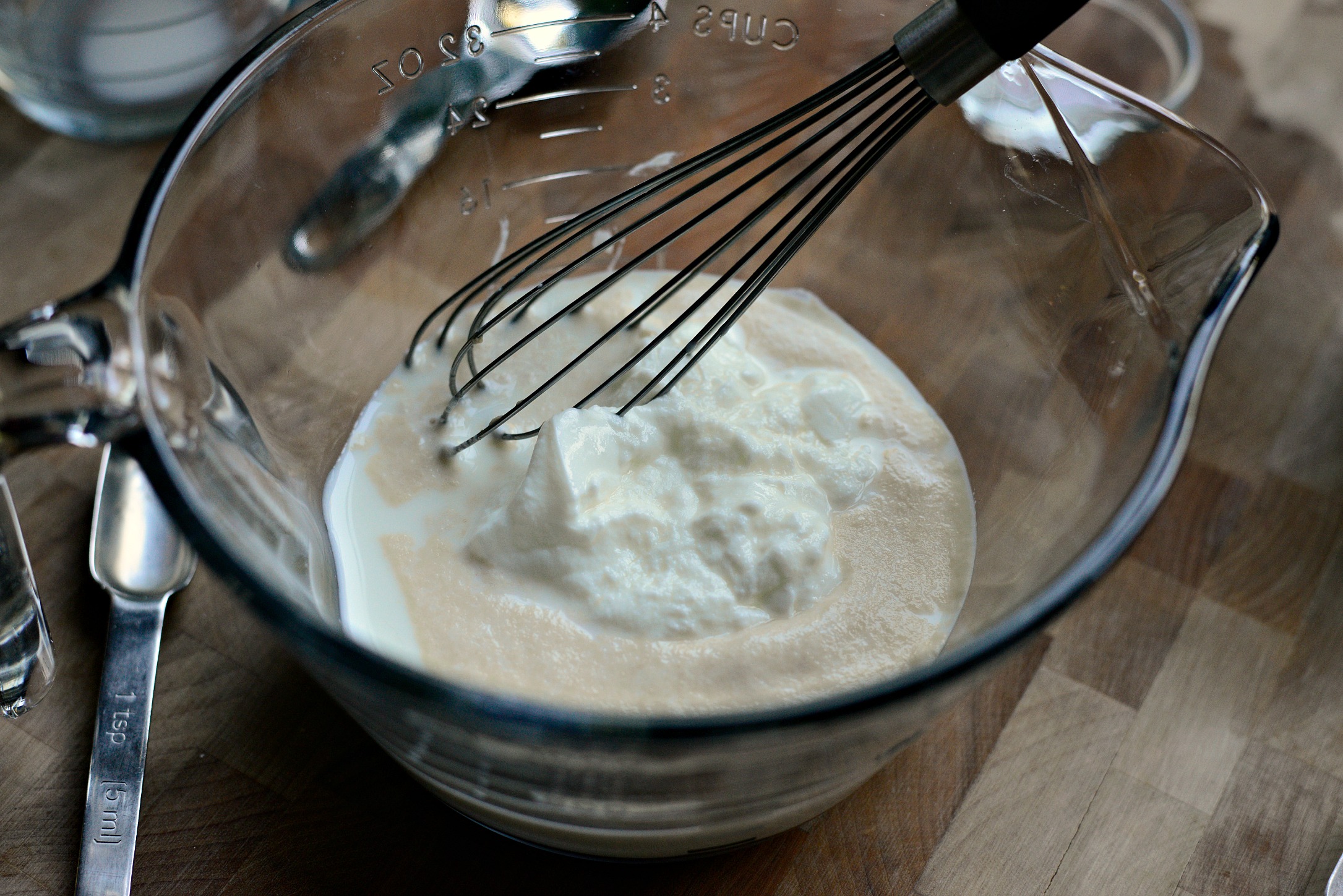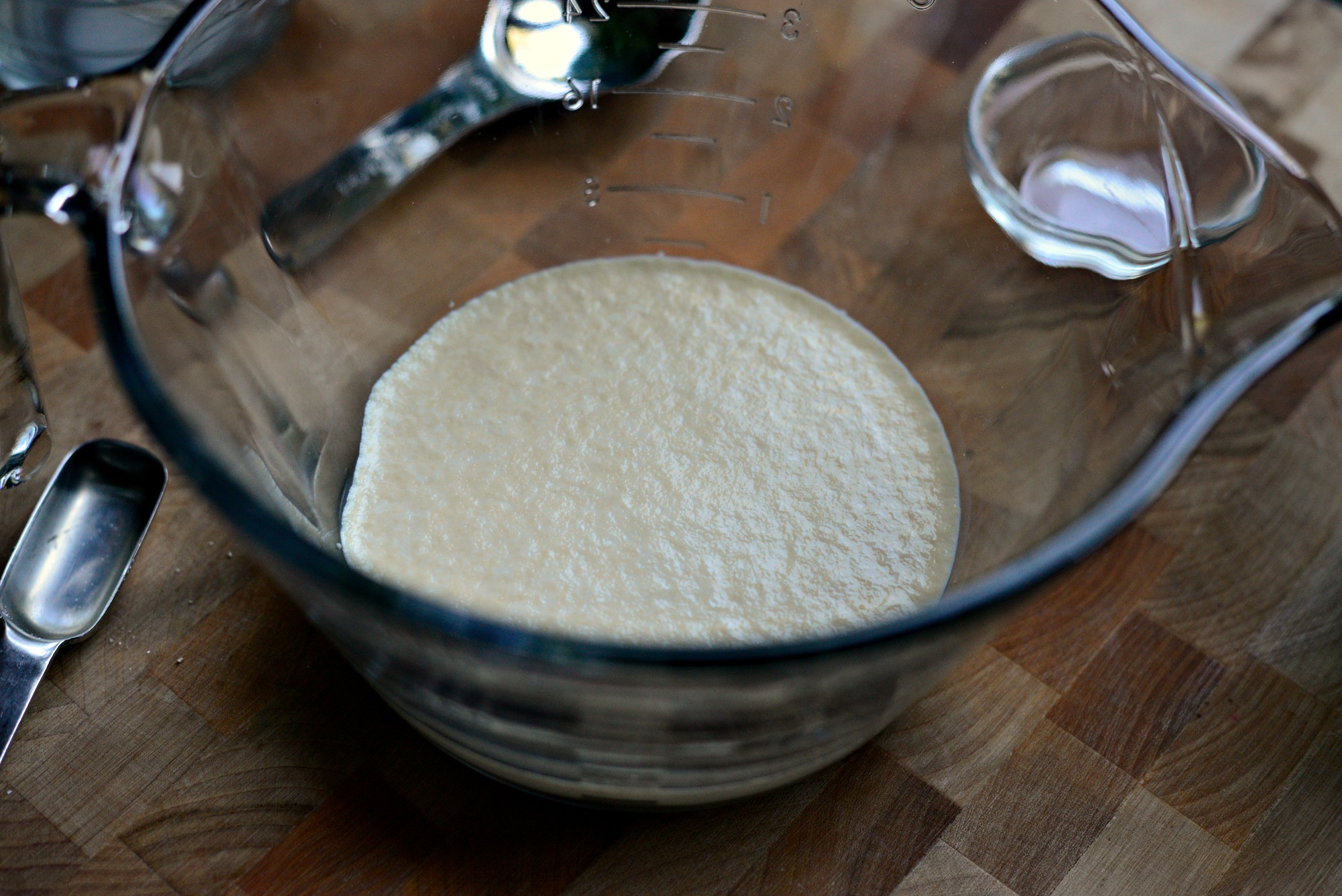 - Add sugar to a medium bowl. Heat milk and water in a small saucepan or use a small dish in a microwave until thermometer reaches 110-115 degrees. Stir water into sugar to dissolve, immediately sprinkle the yeast over top and set aside for 10 minutes to proof. Once the yeast has foamed, stir in the yogurt.