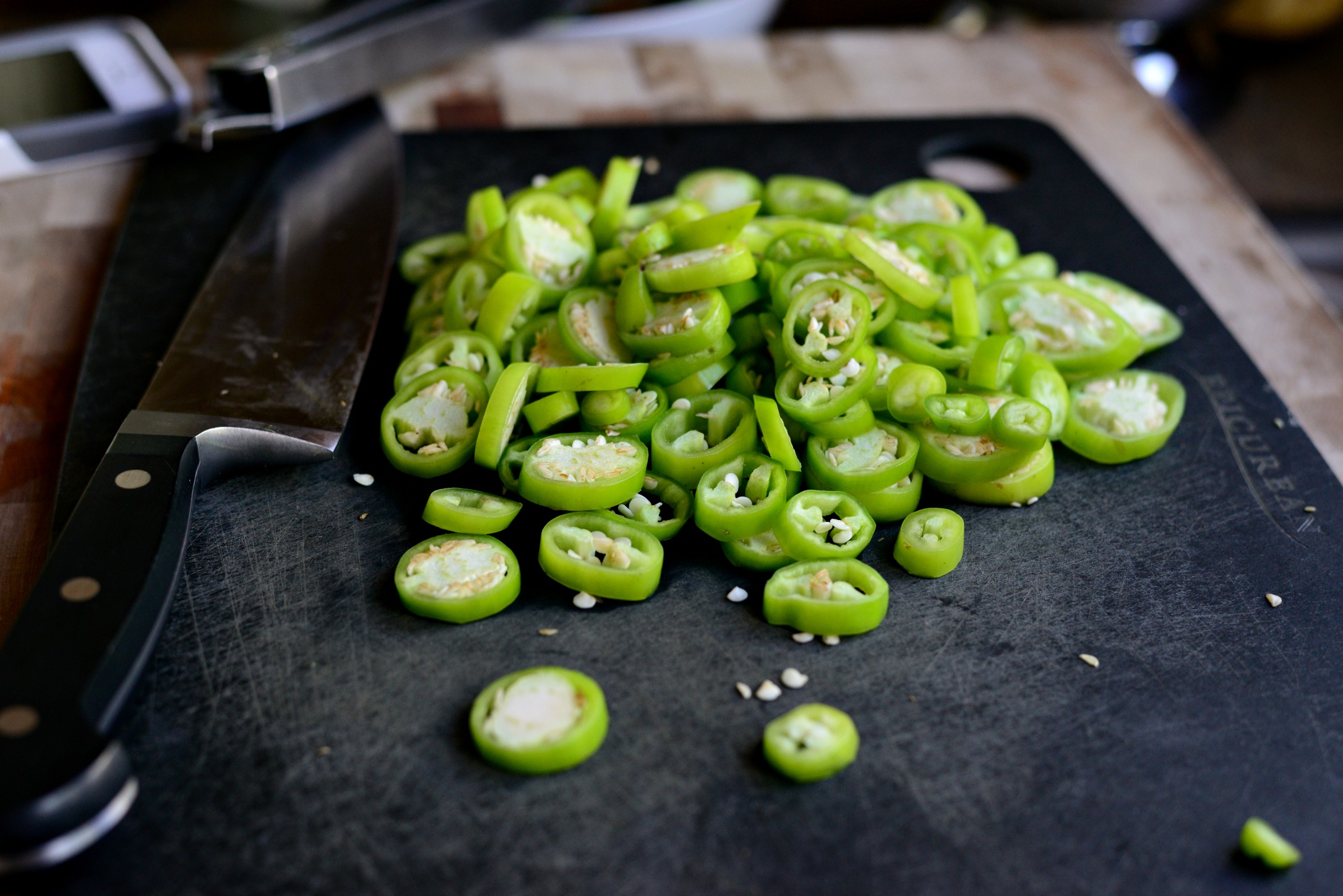 So I did a little Google search to find out exactly what kind of peppers these were. I came back just as confused. They may be banana peppers they may be Hungarian wax {maybe a little of each?}. Luckily either can be used in this recipe, the Hungarian Wax being the spicier option which is what we prefer. I took a sampling of one and they were a smidgen spicy but nothing like a jalapeno.