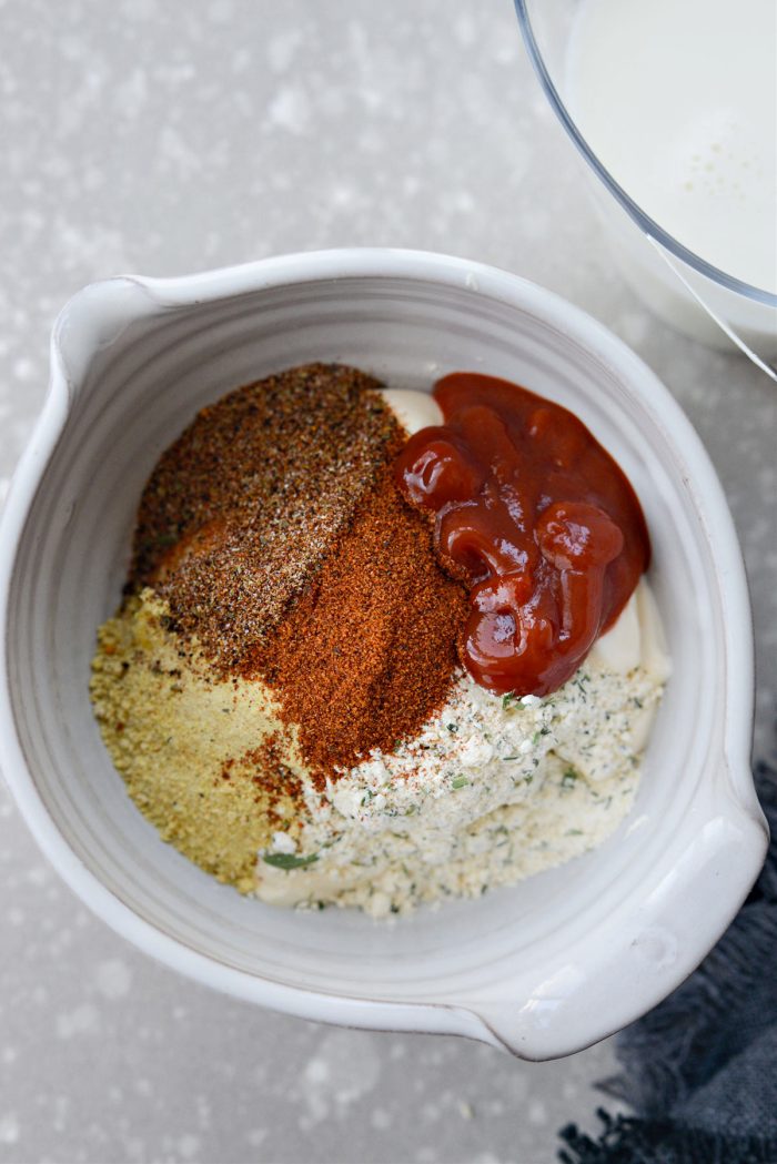 - milk – Used for thinning the dressing. Use any milk of choice.