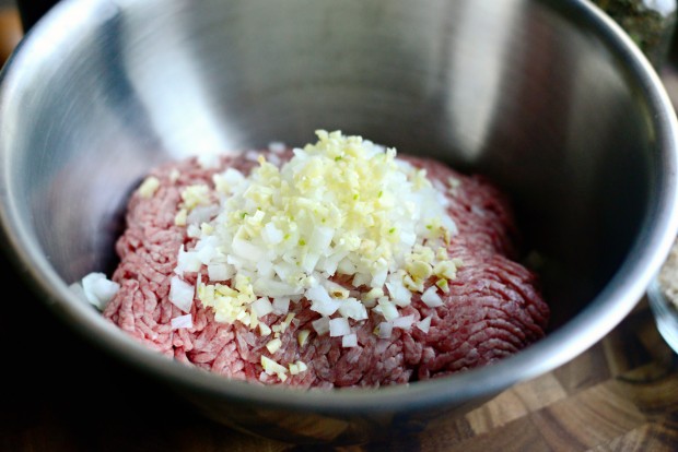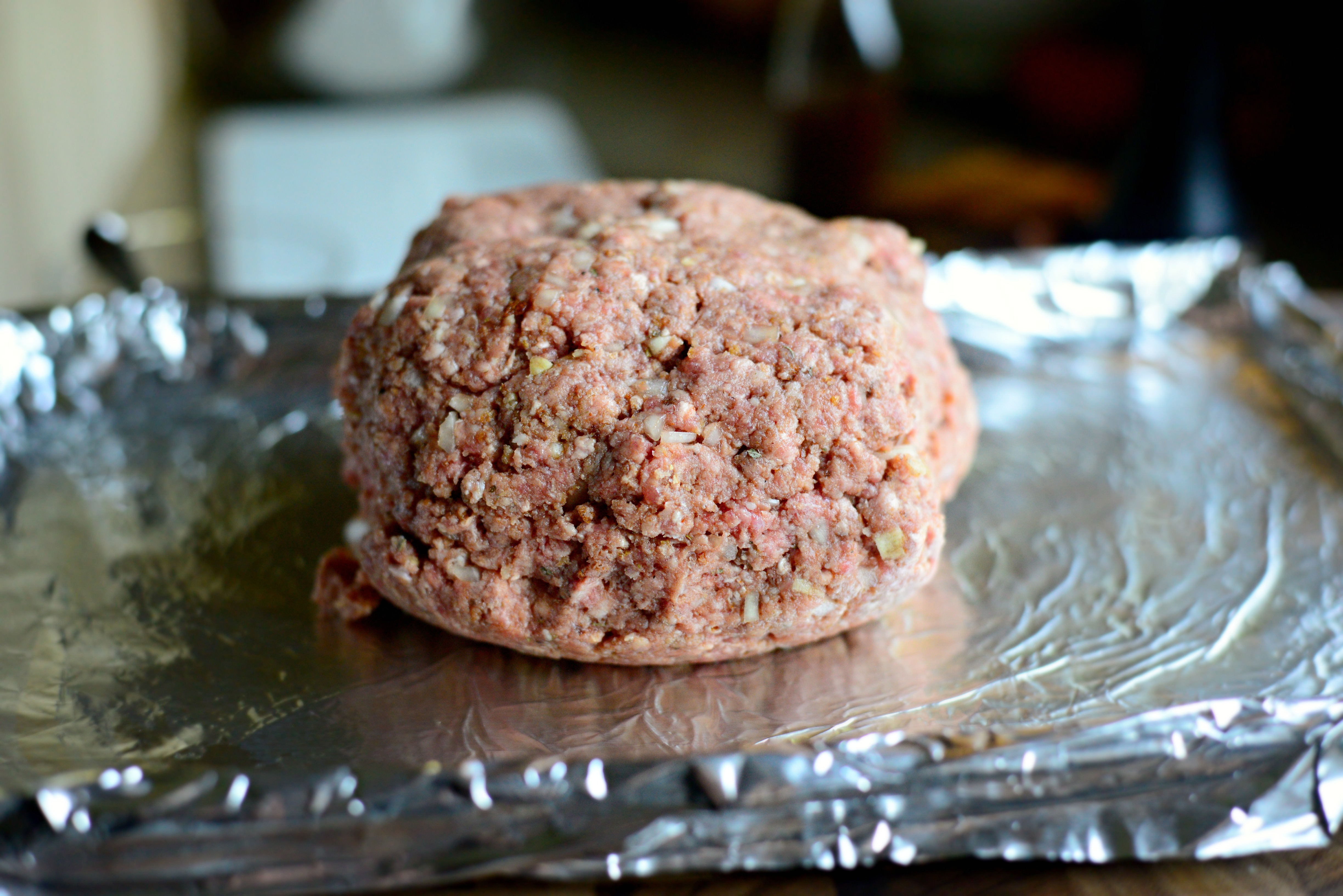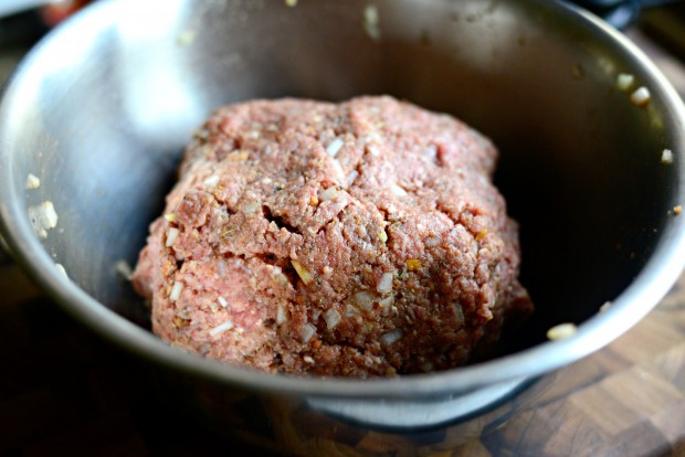 Keep going until you have a giant well mixed ball of meat. It might feel gross at first but actually it’s very therapeutic, especially if you’re particularly frustrated. Let’s just say “for example” the dog just chewed up your favorite pair of wool socks. That’s what I do anyways, and let me tell you IT WORKS. In the end, all you want is it all to be mixed well and seasoned throughout.