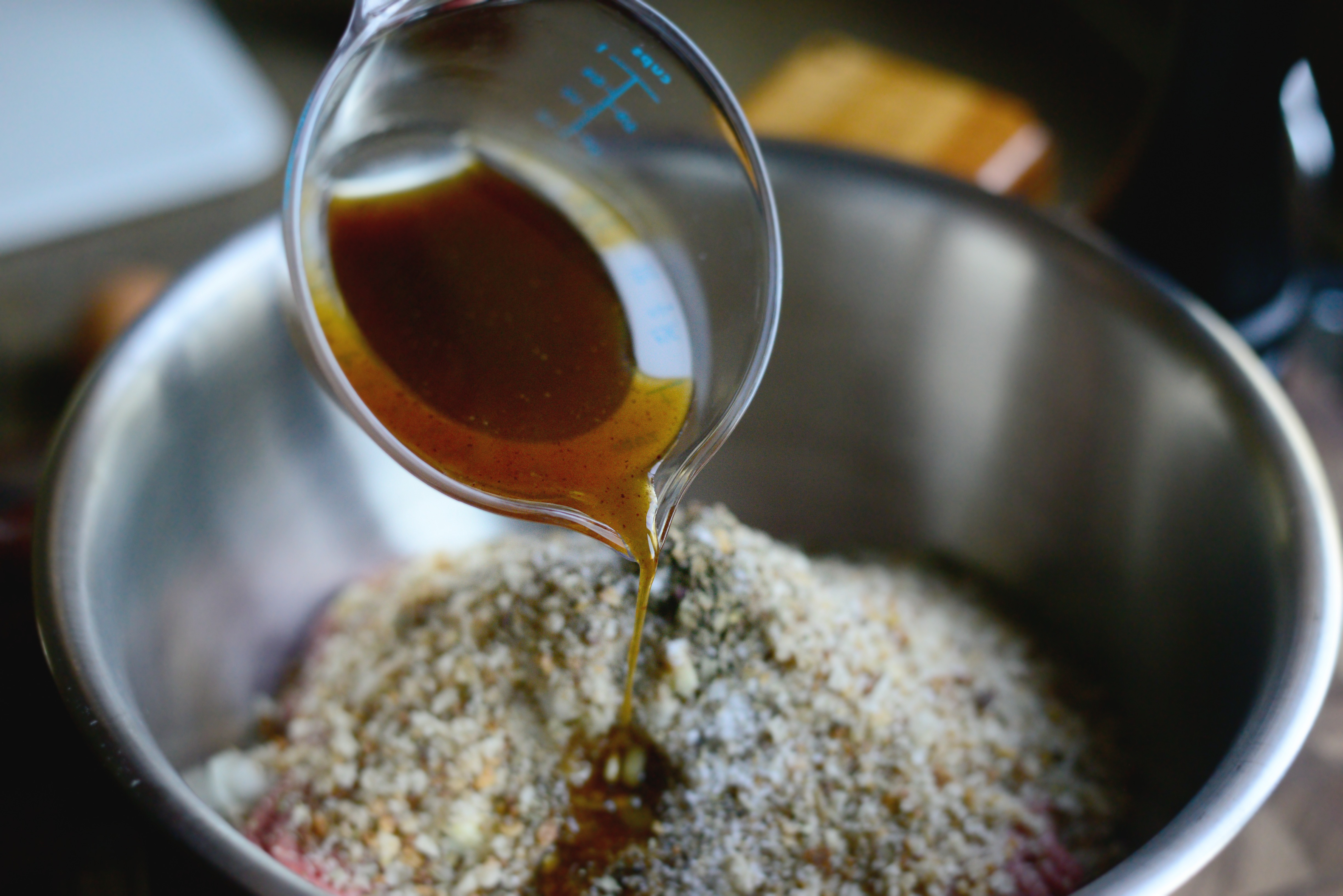 Pour in 1/3 cup Worcestershire sauce. (I make my own Worcestershire sauce, so that’s why it may look different)