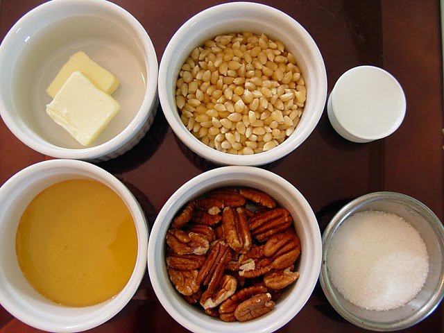 Then juse simply pour the honey butter over the popcorn and pecans.