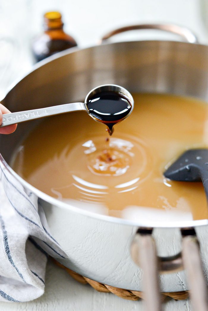 Once hot, remove and add in 1 teaspoon vanilla extract. Want more vanilla? Add another 1/2 to 1 teaspoon or enough to your liking.