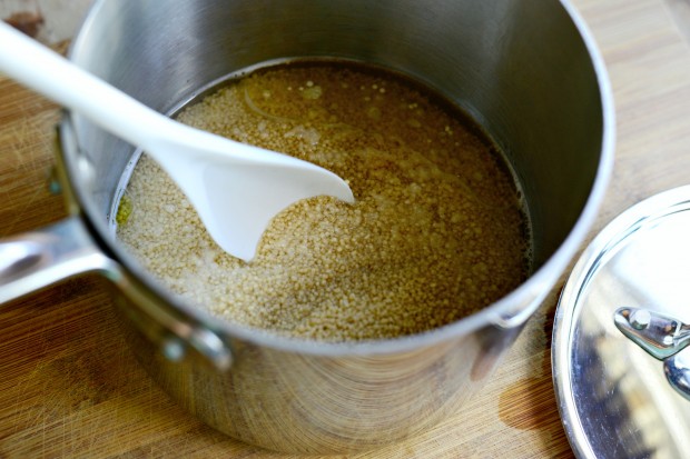 Stir to combine and cover again with the lid and set it off to the side for ten minutes. Doing this allows the couscous to have a chance to absorb the water and olive oil.