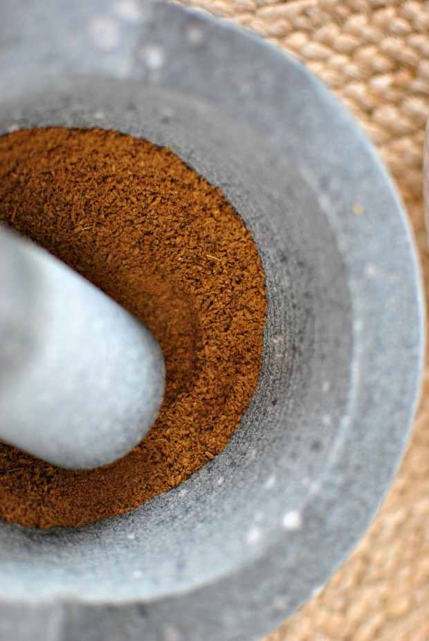 I’m sharing with you how I toasted and hand ground whole spices into dust. It’s quite an intoxicating and exhilarating experience. Toasting anything makes it better; i.e. Subway sandwiches {although I’m more of a Potbelly’s girl}, shredded coconut {better toasted!}, pecans {uh-yeah!?} and of course sandwiches! Wait… wasn’t that already on the list? Oh yeah… and spices.