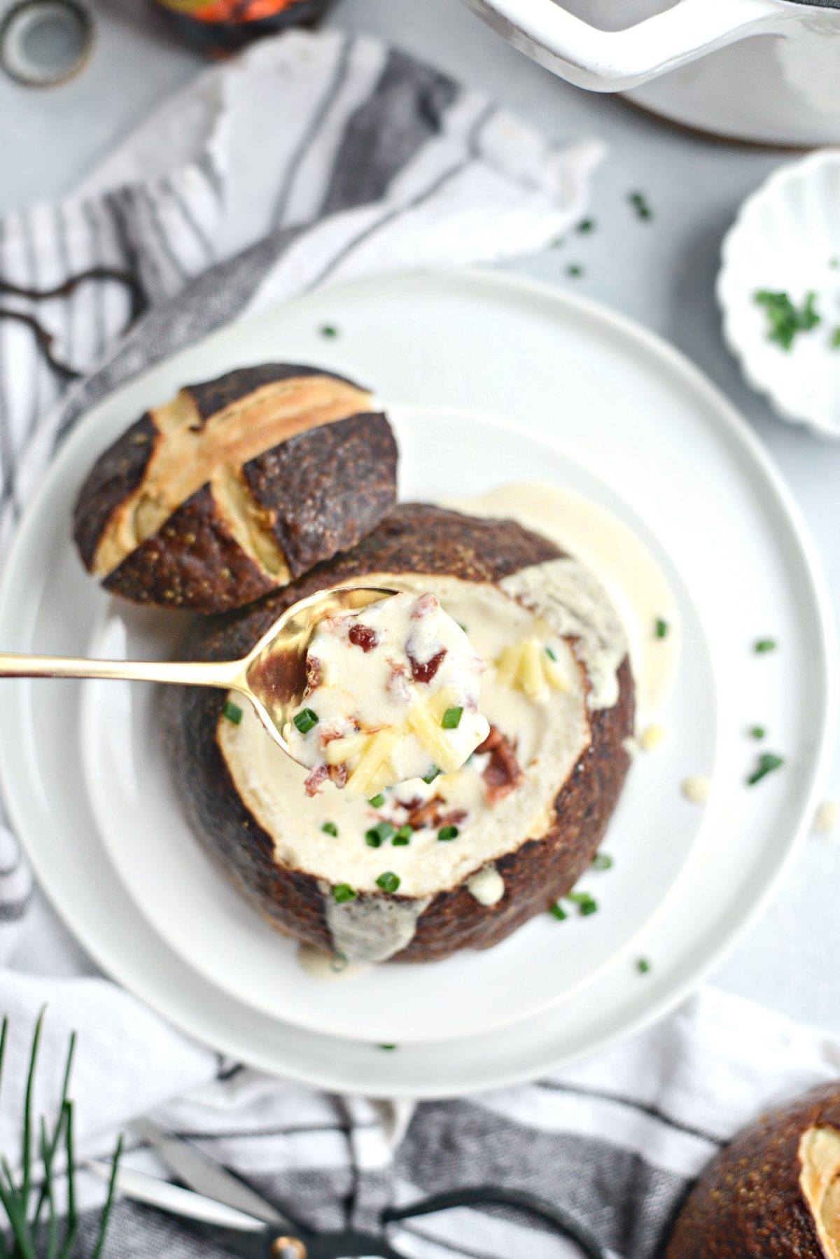 There’s something about soup in a bread bowl that is so beloved. Whenever my girls and I go to Panera, Malloree always orders broccoli and cheddar soup in a bread bowl. She also orders a grilled cheese, oh to have a 13-year-olds metabolism. Her order is what inspired today’s post. I just swapped out the broccoli and cheddar (although that would be delicious too) for Irish cheddar beer soup – you know for St. Patrick’s Day and all.