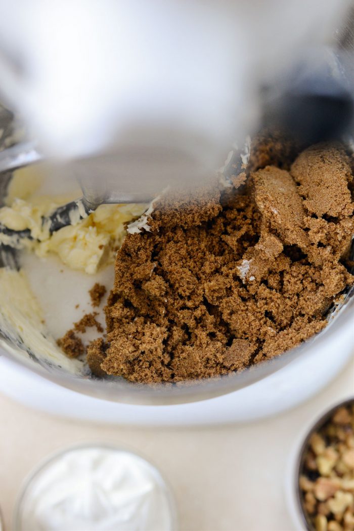 - To the butter add the granulated sugar and dark brown sugar. Continue mixing for 2 more minutes. This should be fluffy like.