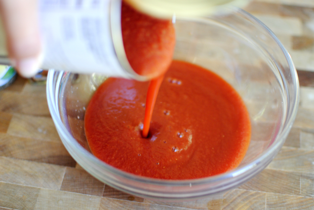 Remember the meatballs have so much going on you don’t need an overwhelming sauce! Start this off by adding a 15 ounce can of tomato sauce in a bowl.