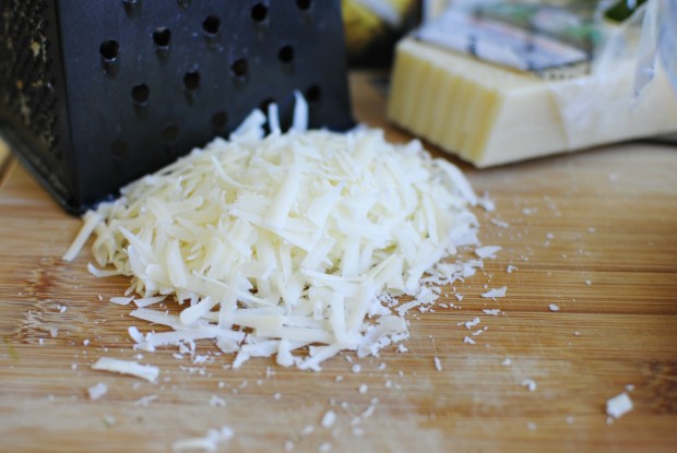 Lastly grate the fresh parmesan and scoot it off to the side.