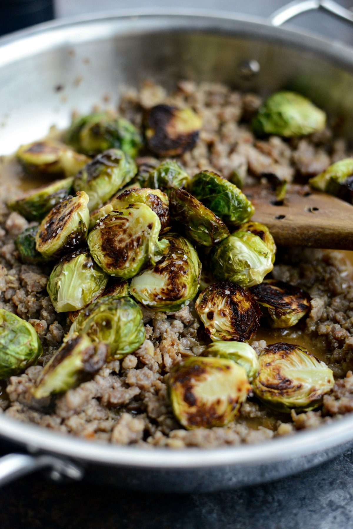 - Meanwhile, heat a large, deep-sided skillet on medium to medium-low and drizzle in a little olive oil. Sauté shallots, garlic with a pinch of kosher salt until just tender. Add in the mild or hot Italian sausage and use a wooden spoon to break it up into small crumbles. Fully cook the sausage until browned and no longer pink. You want some crispy brown bits stuck to the bottom of the pan. Drain off any fat as needed.