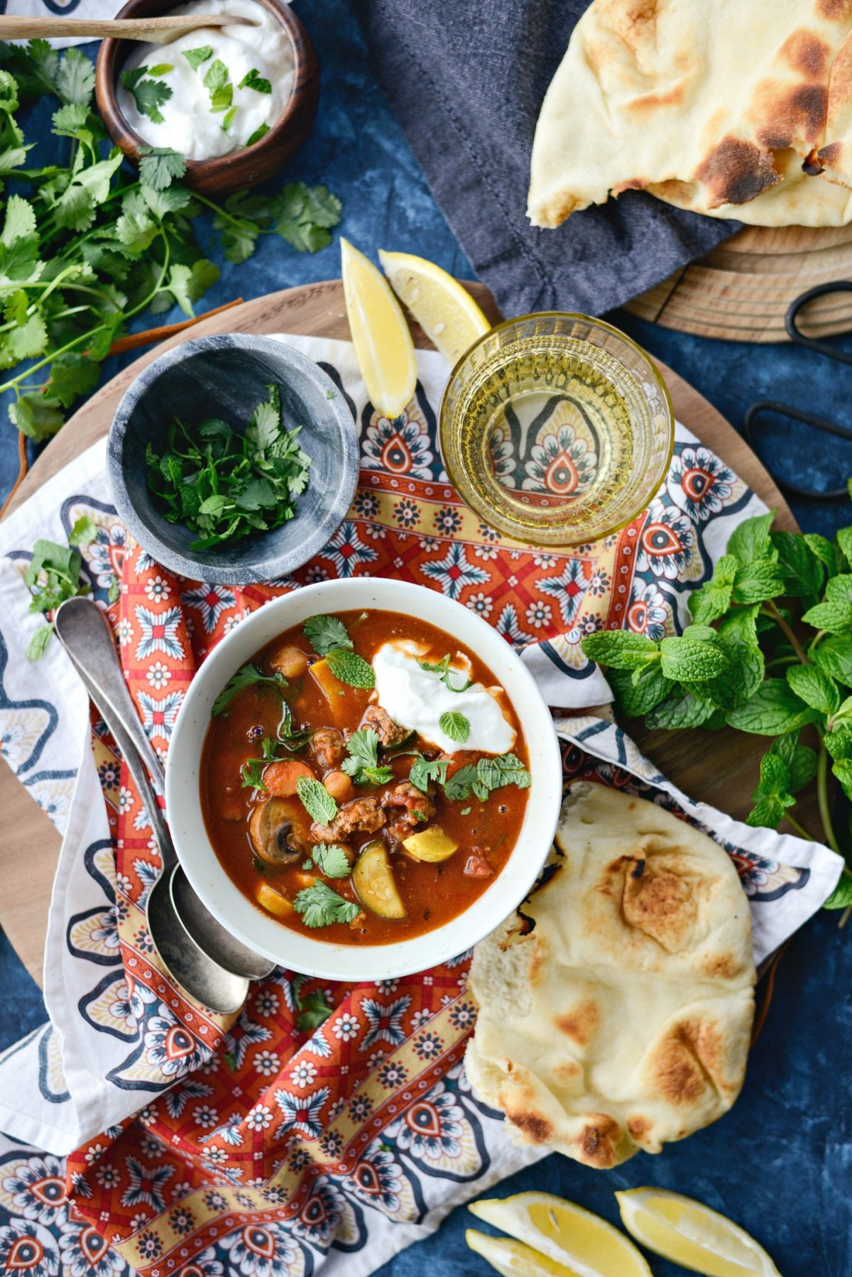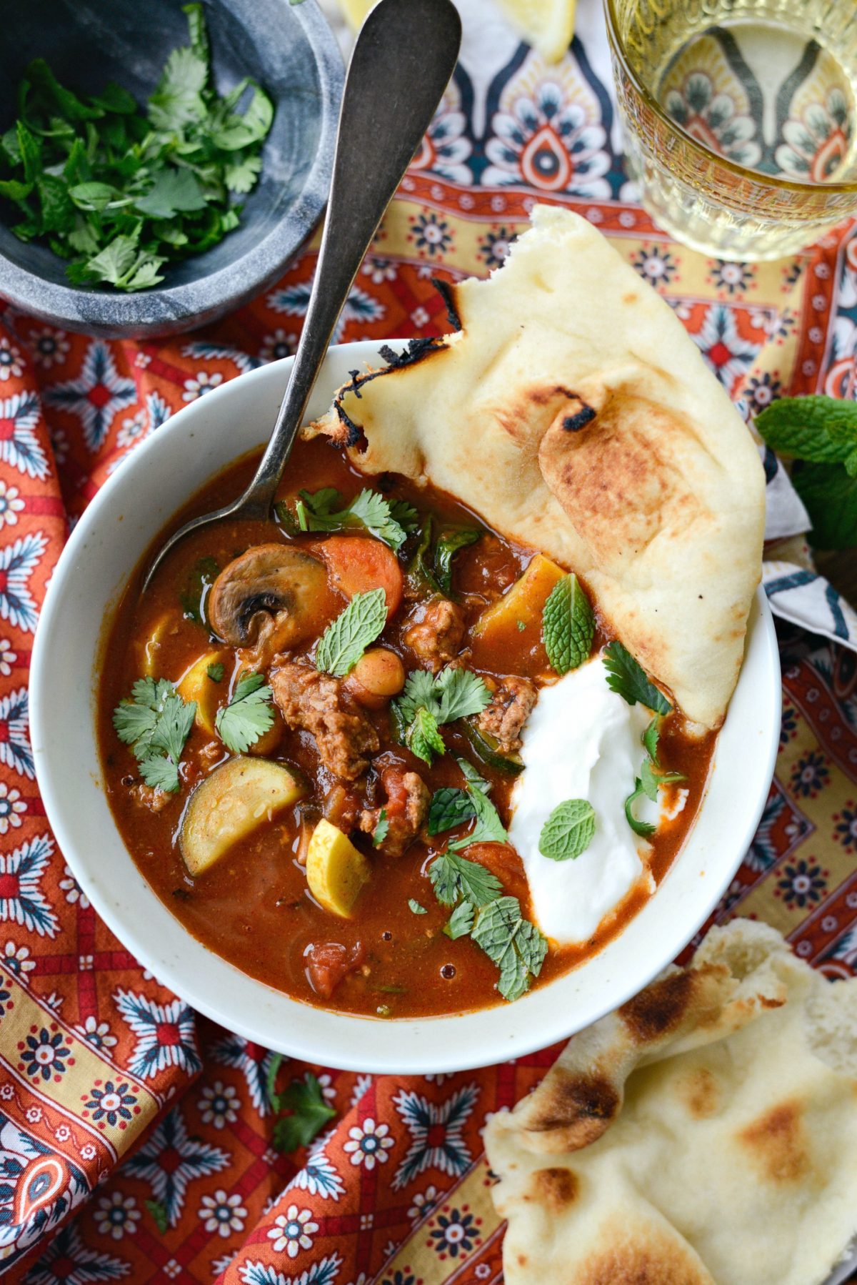 If you’re not avoiding carbs or gluten, serve the lamb shawarma stew with toasted naan bread which will help you wipe your bowl clean ;).