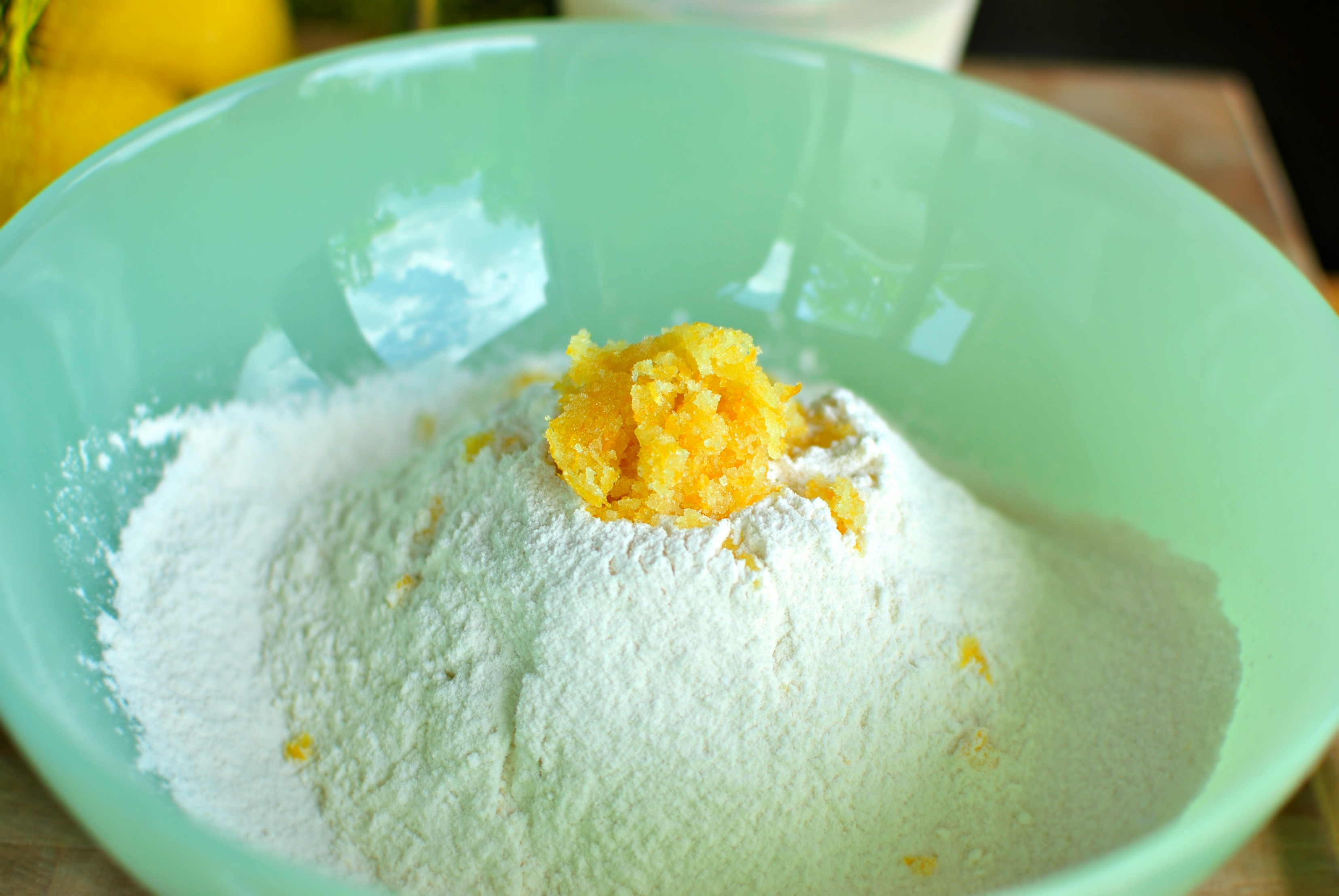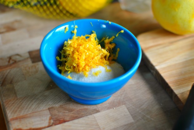 With your fingers, rub 2 tablespoons sugar with 2 tablespoons lemon zest together until it starts to resemble wet sand.
