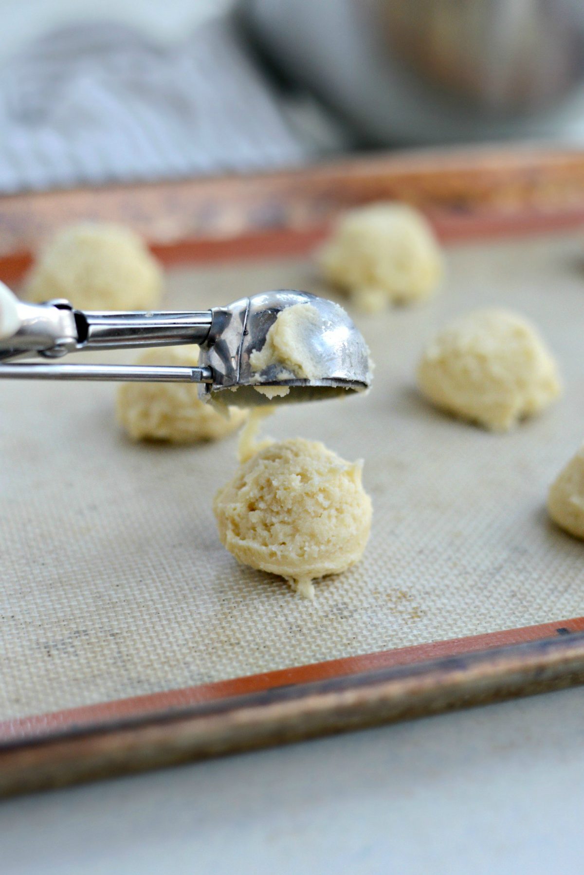 Use a 2-tablespoon scoop to measure out the dough and place onto a parchment or silicone lined baking sheet.
