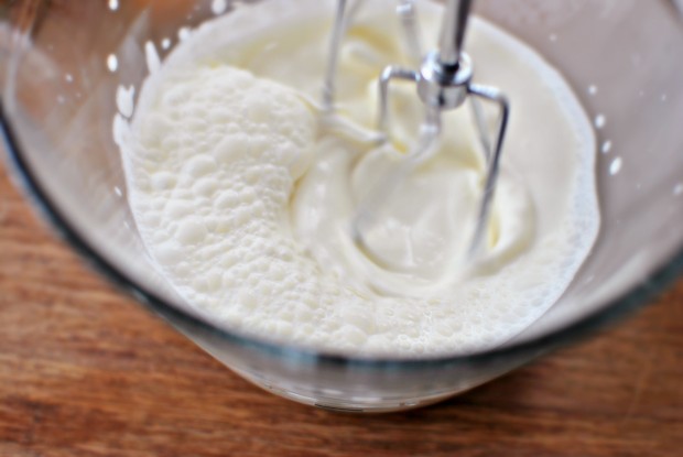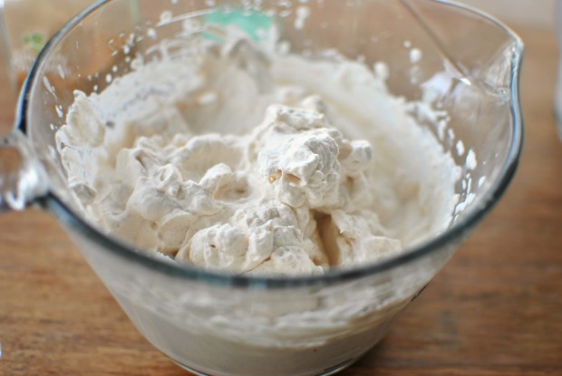 A little trick I like to do when I’m making whipped cream, is to chill the bowl and beaters in the freezer for about twenty minutes or so beforehand. The cream will set up and thicken faster this way. It’s not crucial or anything, so if you don’t have the time, you don’t have to.