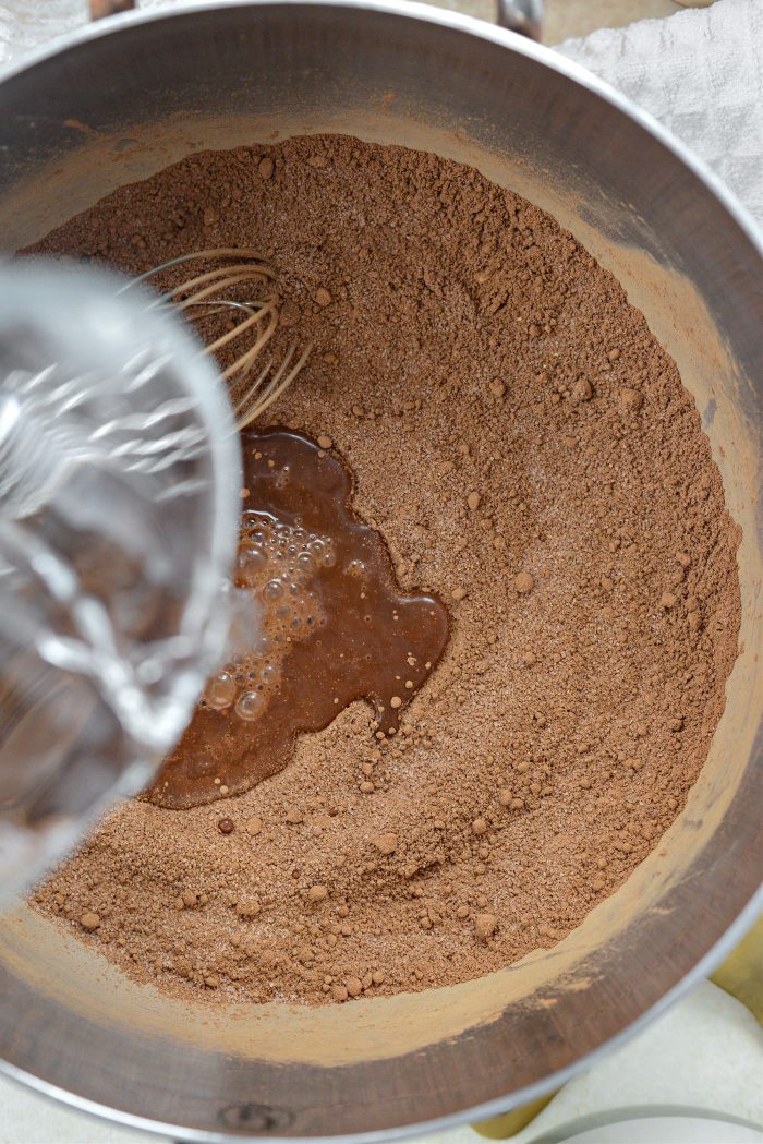 - In a medium saucepan add the sugar, unsweetened cocoa powder, spices, salt and water. Bring to a boil, whisking until the sugar has dissolved.