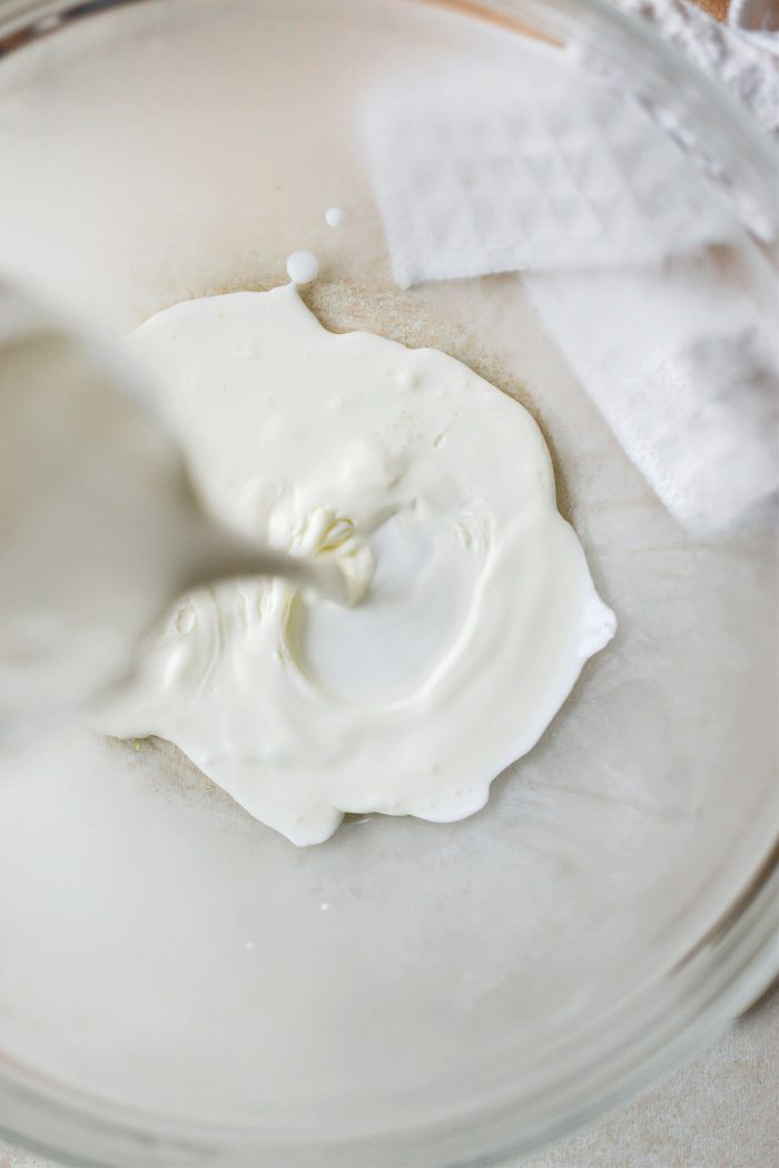 Then, with your mixer or hand mixer on low, start to whip the heavy cream. Increase the speed gradually. Stop whipping the heavy cream once the cream starts to thicken, but isn’t completely thick yet. Then add in the 1/2 teaspoon vanilla and sift in the 2 tablespoons of powdered sugar and 1/2 teaspoon of ground cinnamon.