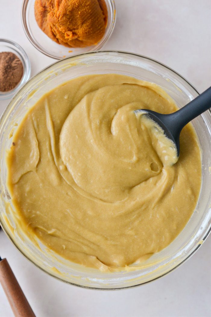 • In bowl number two: add pumpkin puree and pumpkin spice.