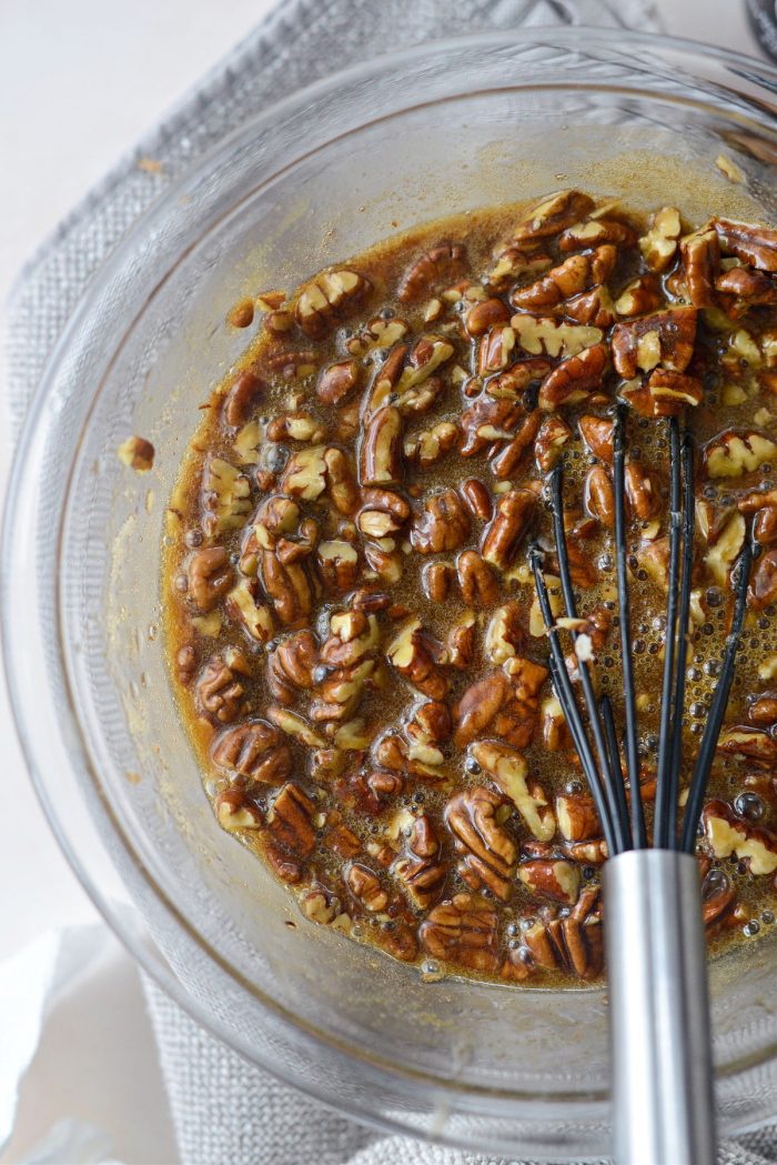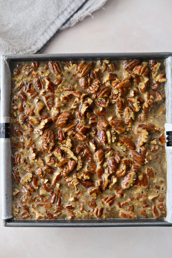 Spread evenly and place it back in the oven for another 20 minutes or until the pecan pie is set.