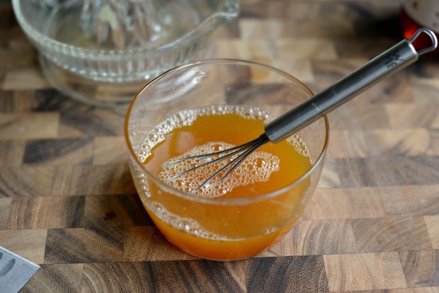 Whisk until the honey becomes one with the juice and set off to the side while you prep the fruit.