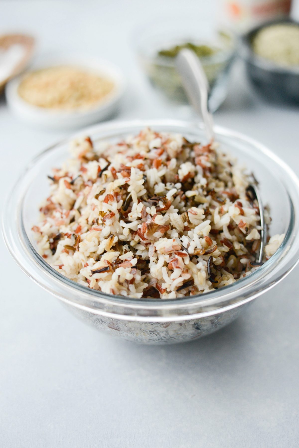 I would suggest starting with the rice. This wild rice blend has wild rice mixed with white, brown and red. I prepared the rice earlier in the day so it would have a chance to cool. I of course used my rice cooker, but added a couple smashed and peeled garlic cloves to the pot so the rice had some subtle garlic flavor. Just remember to remove it before you serve it. 😉