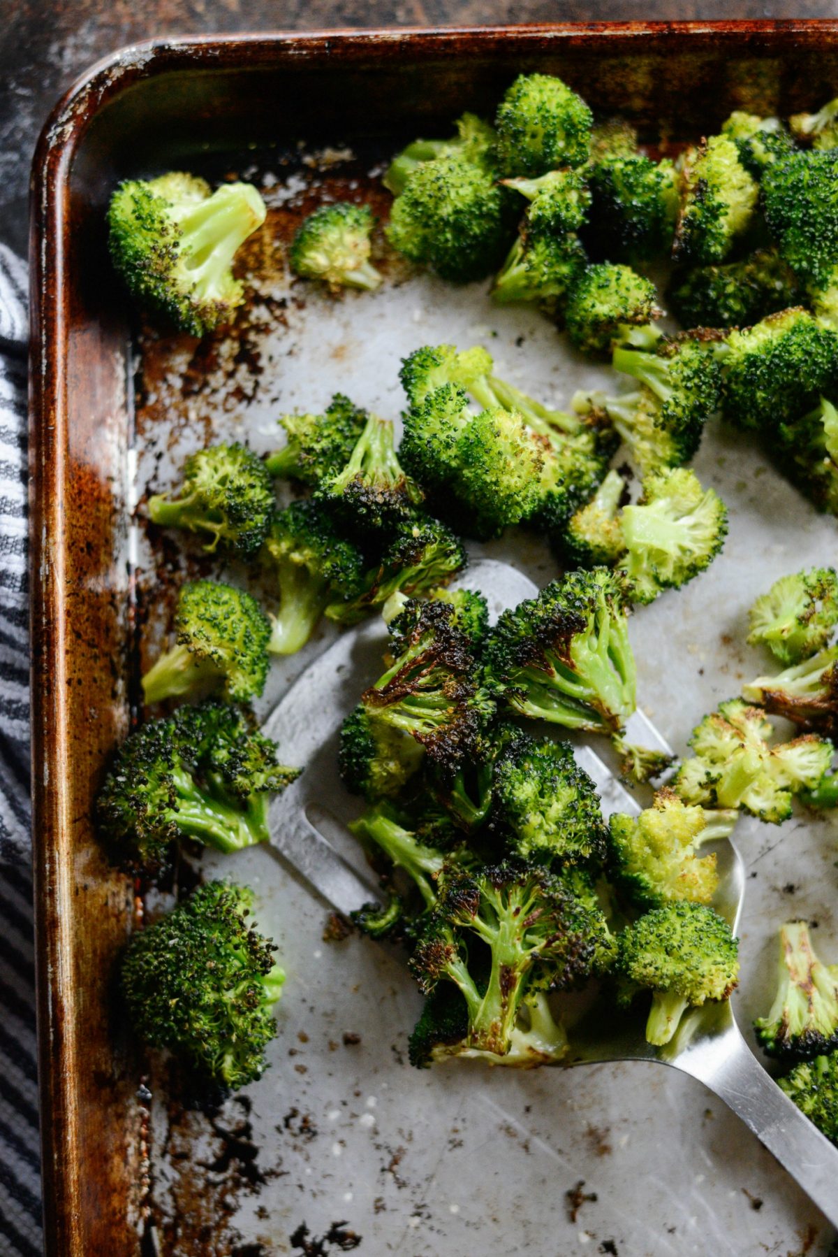 It all started with a similar recipe that I shared years ago. One day I just eliminated the parmesan –probably ran out– and just roasted the broccoli straight-up with olive oil and some salt. Best. Idea. Ever.