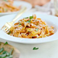 My very favorite pasta recipe is my Shrimp Fra Diavolo. It’s so easy to whip up and is perfection! I also serve it with Chicken because that’s what the rest of my family prefers. 🙂