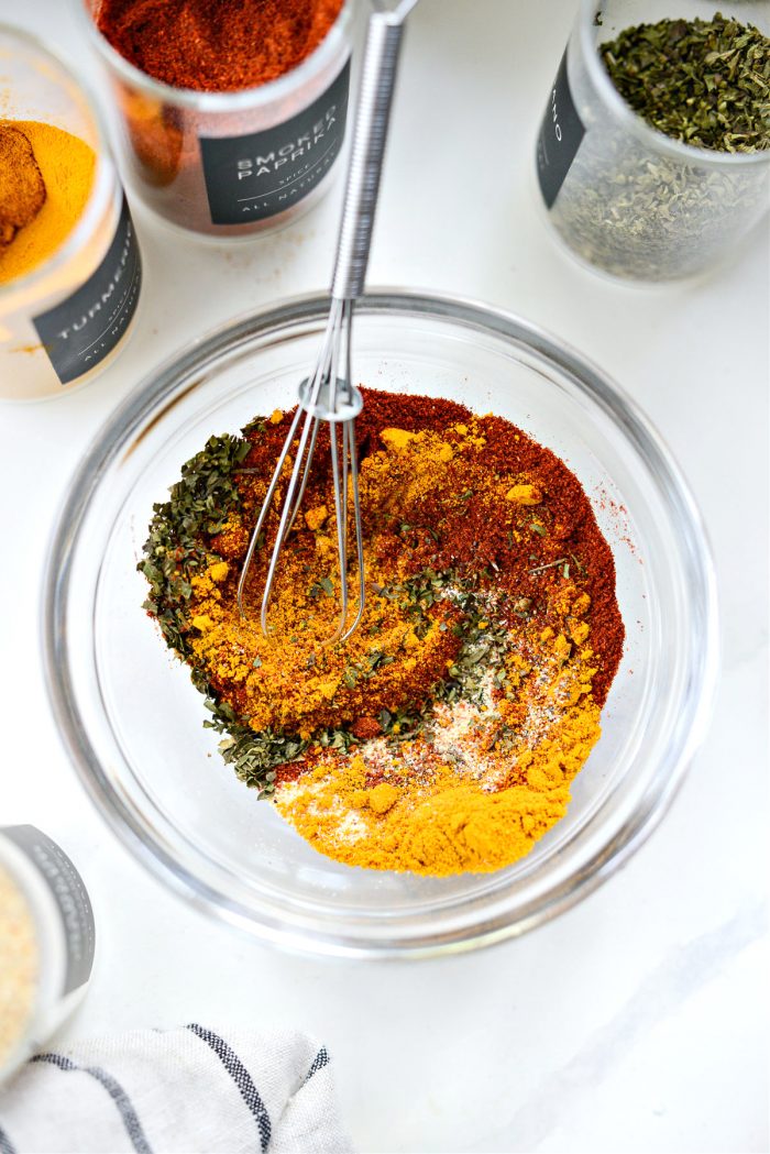 - Then in a bowl, measure and add smoked paprika, turmeric, dried oregano, garlic powder and ground black pepper. Whisk to combine