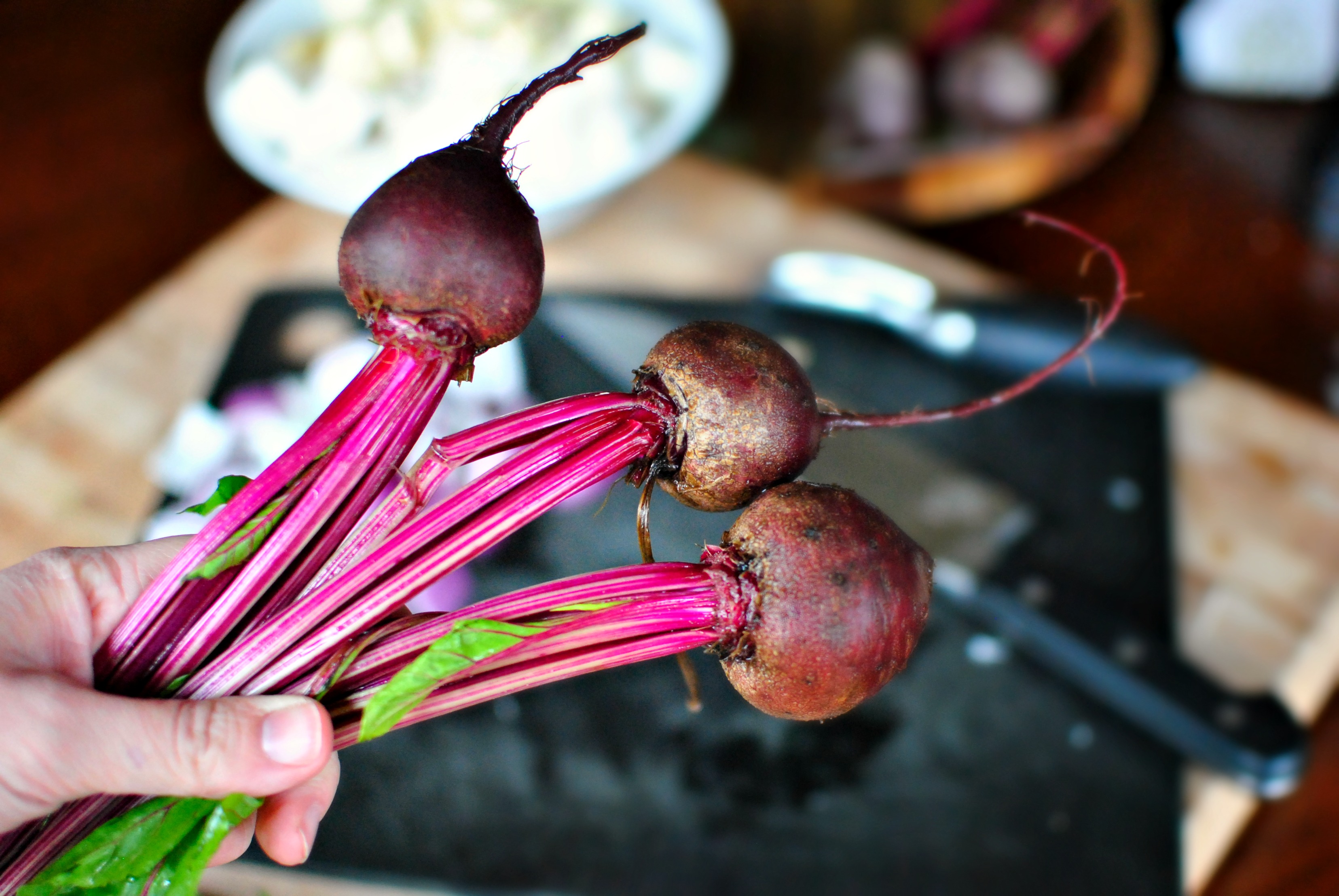 I love love love love beets. Not only are they super photogenic but healthy too. My hubs would say they taste like dirt. I disagree. They are the gems go the earth! I picked up these lovely beets at the grocery store because they are on the small side, which I love.