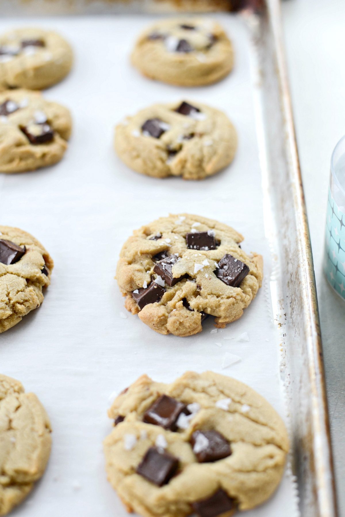 In my oven, 9 minutes was perfect. The edges were barely golden and the middles were soft. Right out of the oven, sprinkle with sea salt and allow the cookies to cool on the pan for a few minutes before transferring to a wire rack to finish cooling.