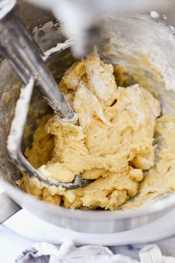 Add in the flour mixture and mix on low to medium-low speed until just combined.