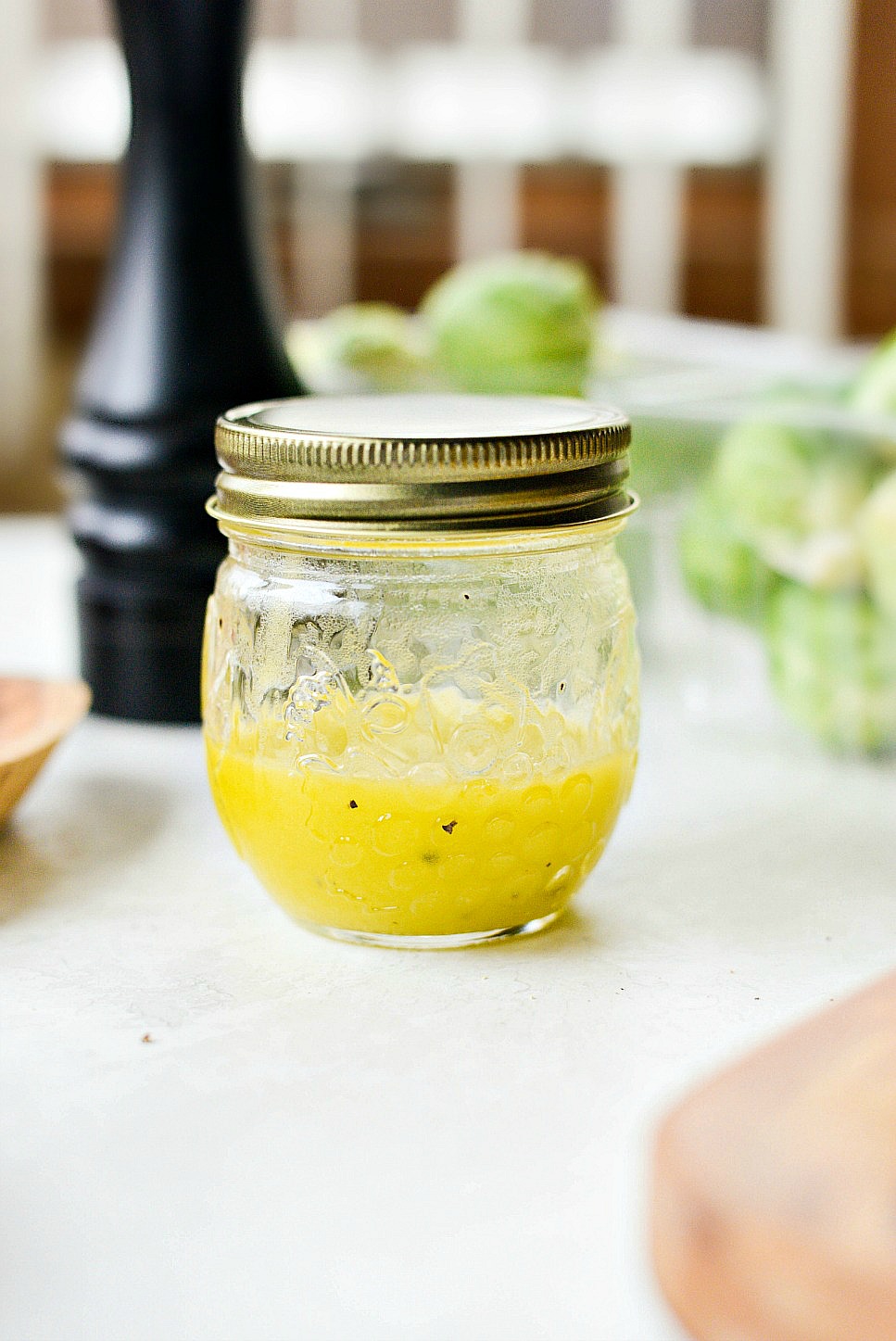 - In a small glass jar combine lemon juice, olive oil, salt and pepper. Shake well to combine.