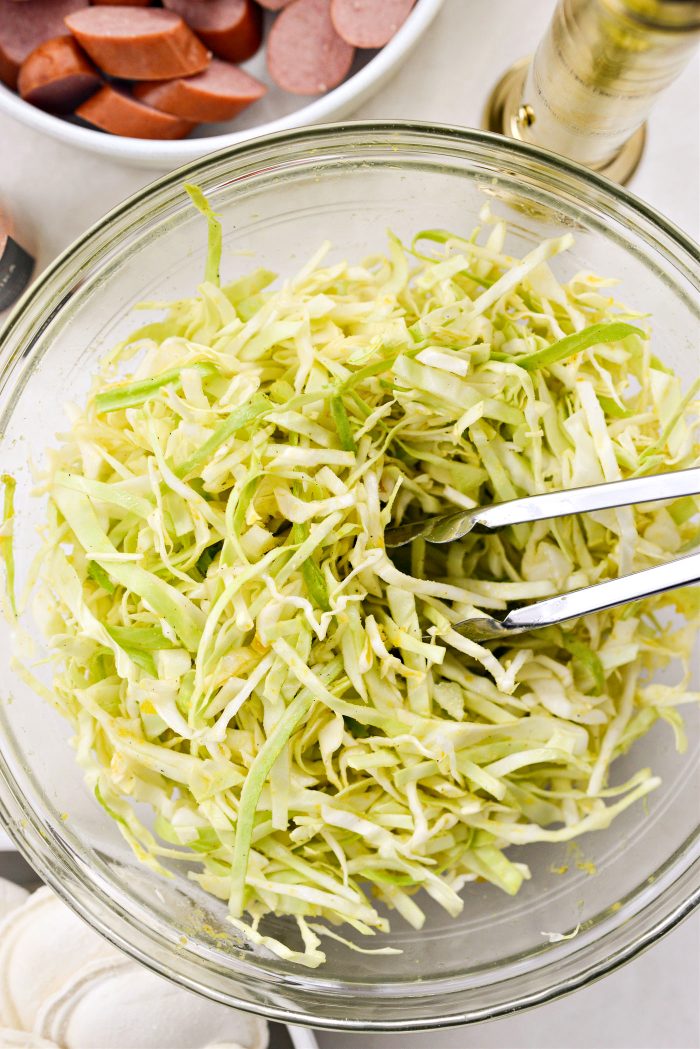 Note: Because the bouillon has salt in it, you DO NOT want to season the cabbage with any salt or else it will be overly salty.