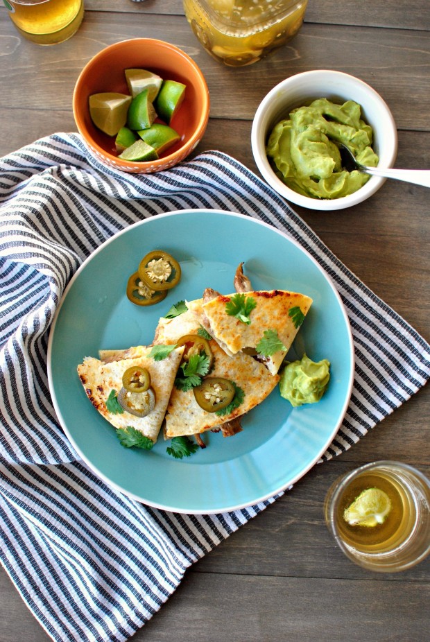 Your little ditty looks amazing. I’m swooning over that moist, tender pork. Love me some quesadillas. Yeah, I skipped right on over Cinco de Mayo this year. Bad blogger!