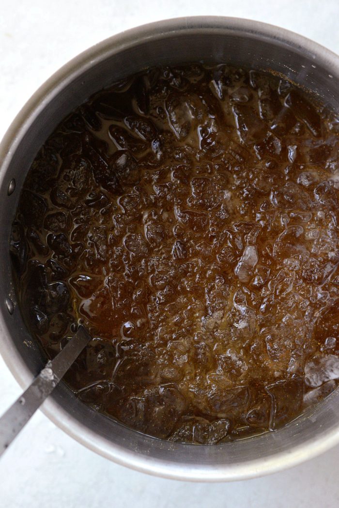 I grab a large spoon and scrape around the bottom and sides of the pot. I do this a few times until I’m certain all the sugar and salt have dissolved.