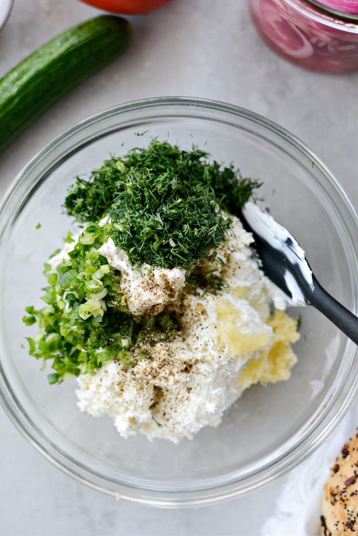 - garlic dill cream cheese – Adds creaminess with notes of onion, garlic and dill.