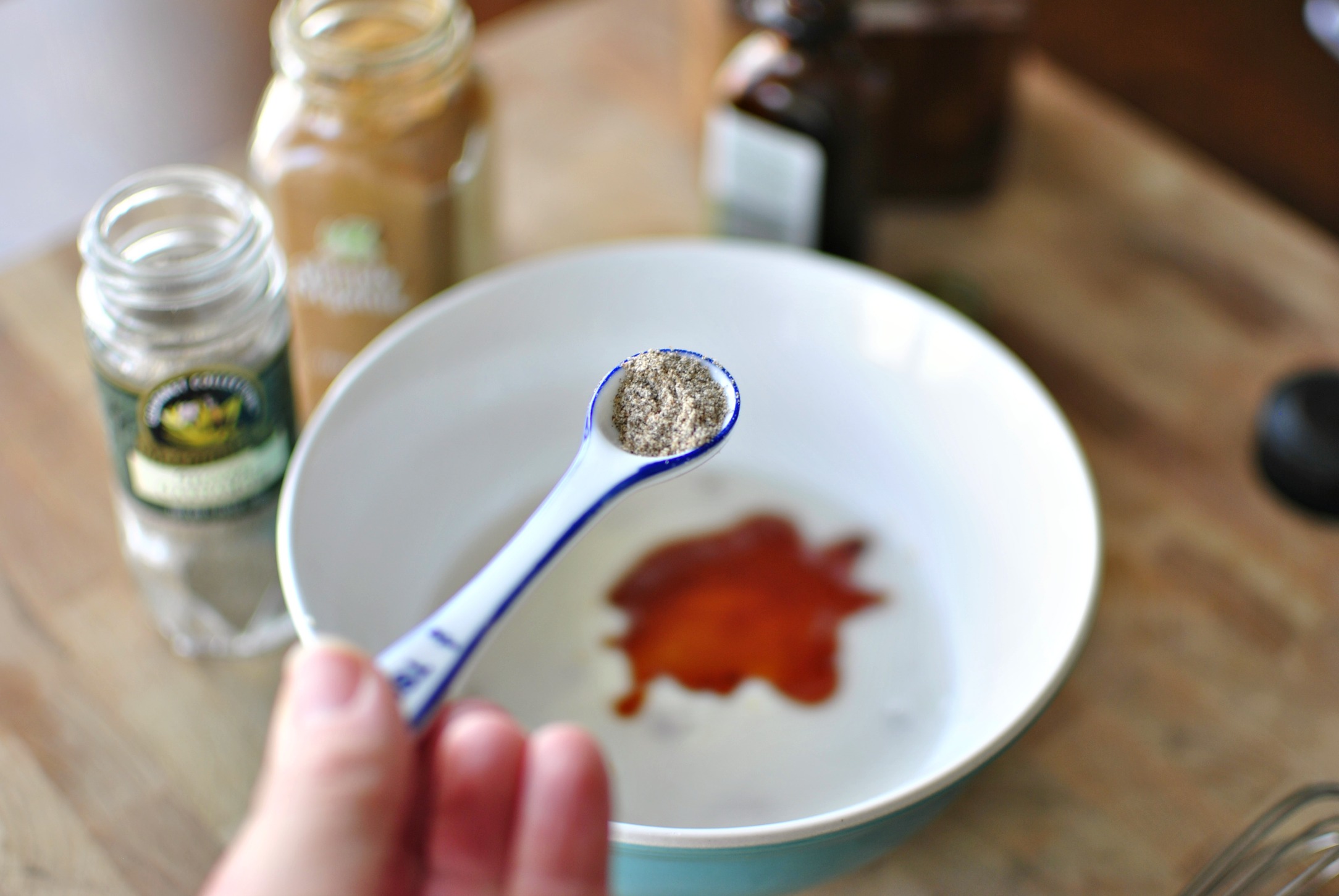 - In a small bowl combine the honey, coconut butter, vanilla, cardamom, cinnamon and a pinch of kosher salt. Stir and set off to the side.