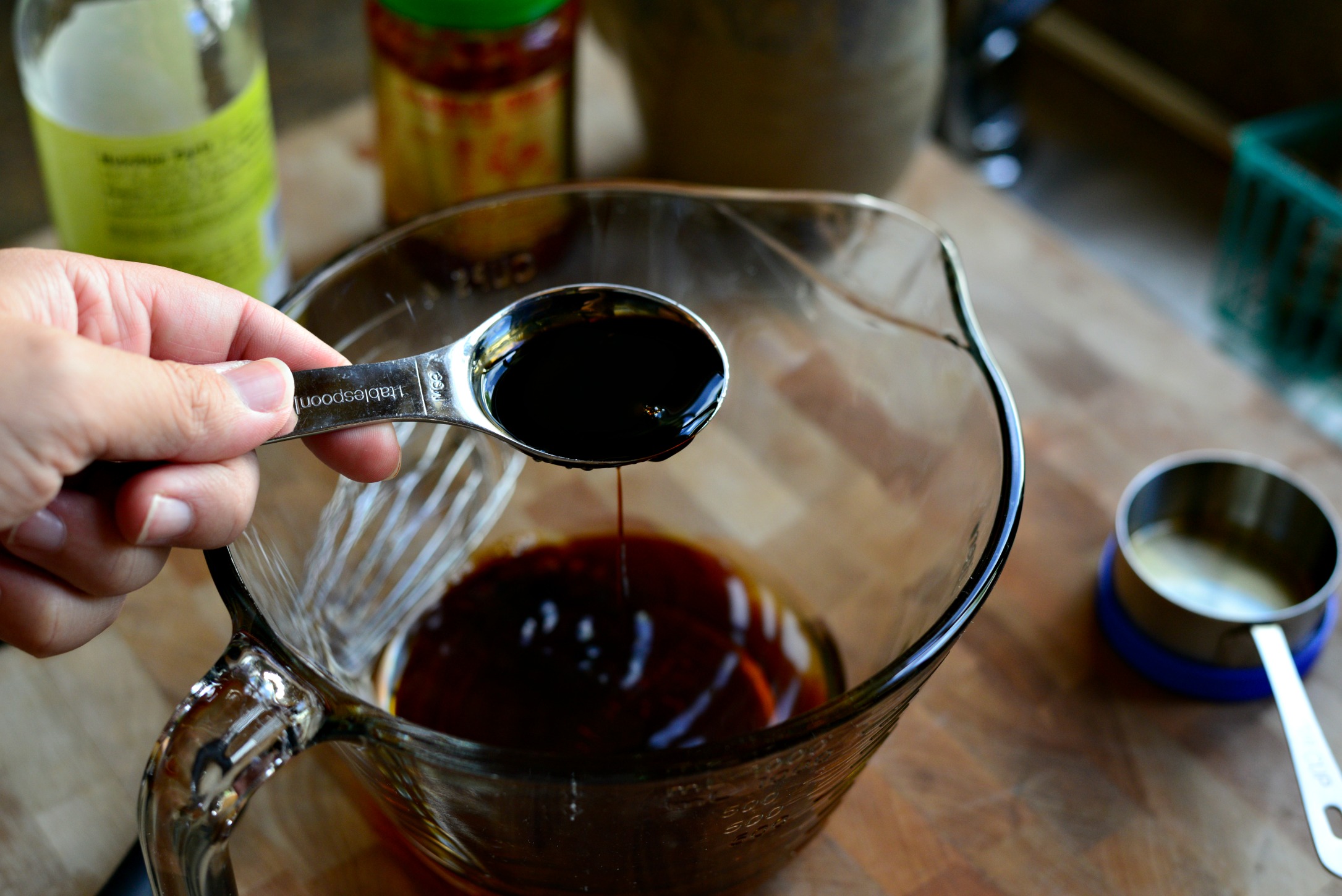 Then measure and add two tablespoons of low-sodium tamari. However, you could totally swap this with low-sodium soy sauce if that’s what you have on hand.