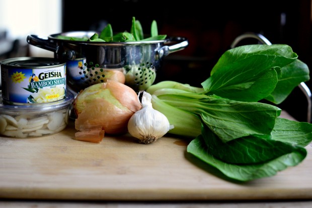 - 4 baby bok choy, sliced (root ends discarded)