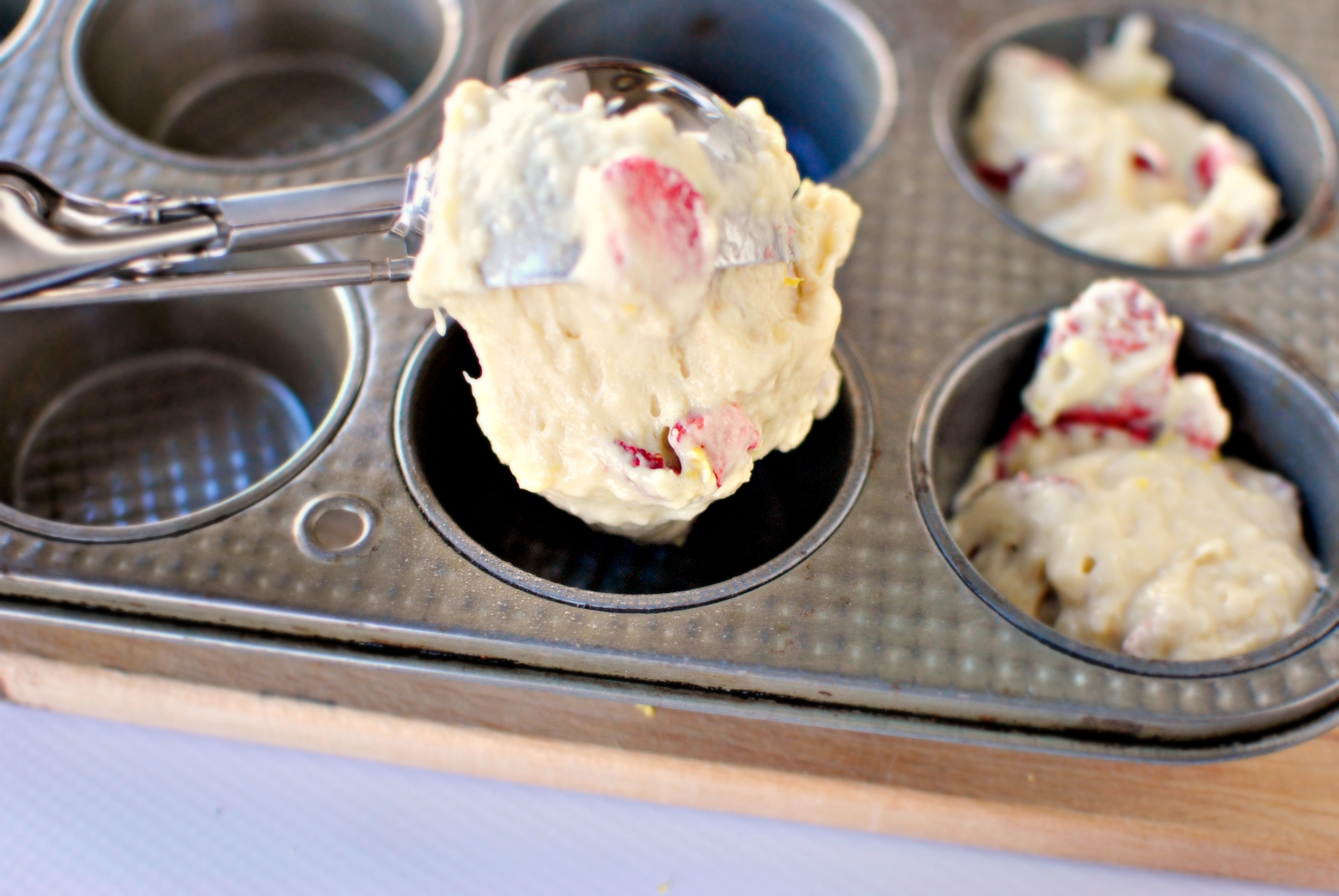 It all started with these muffins here and today I thought I would mix that pancake-y muffin batter with some strawberries and lemon zest, because why not? If these pancake muffins don’t perk your morning right up I don’t know what will.