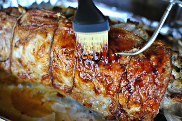 I simply brushed two to three tablespoons of it all over the top and popped it back in the oven until it hit the 160 degree mark.