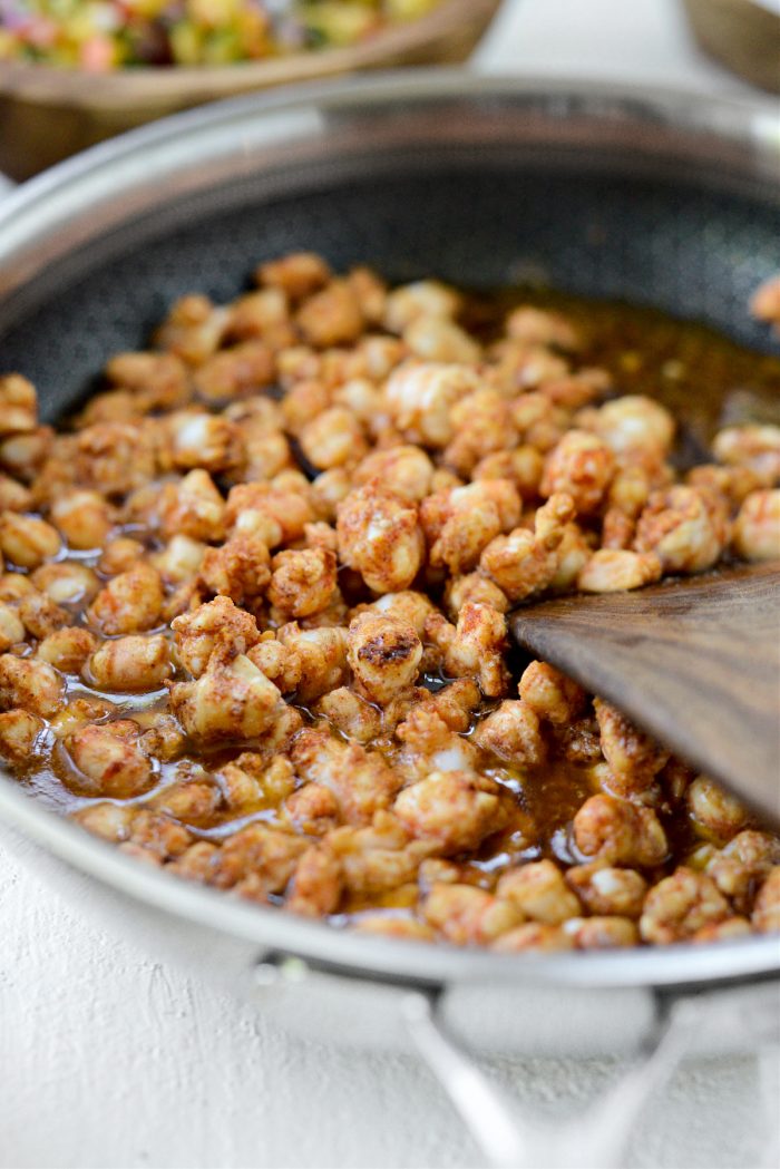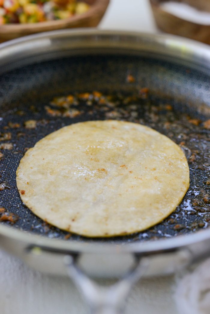 Reduce heat and warm shells in the same skillet. Draining any excess liquid out of the pan first.