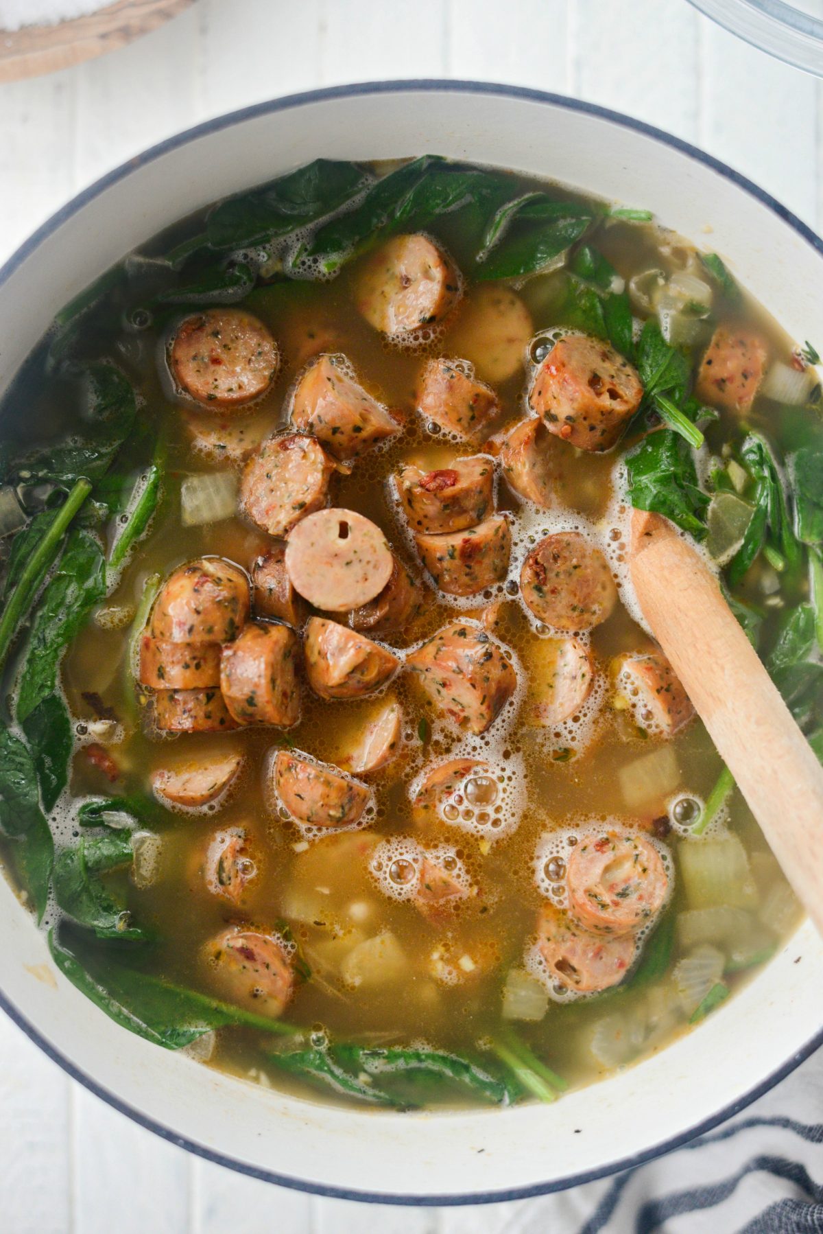 I could live on this stew. I love the combination of the chicken sausage, spinach and white beans.