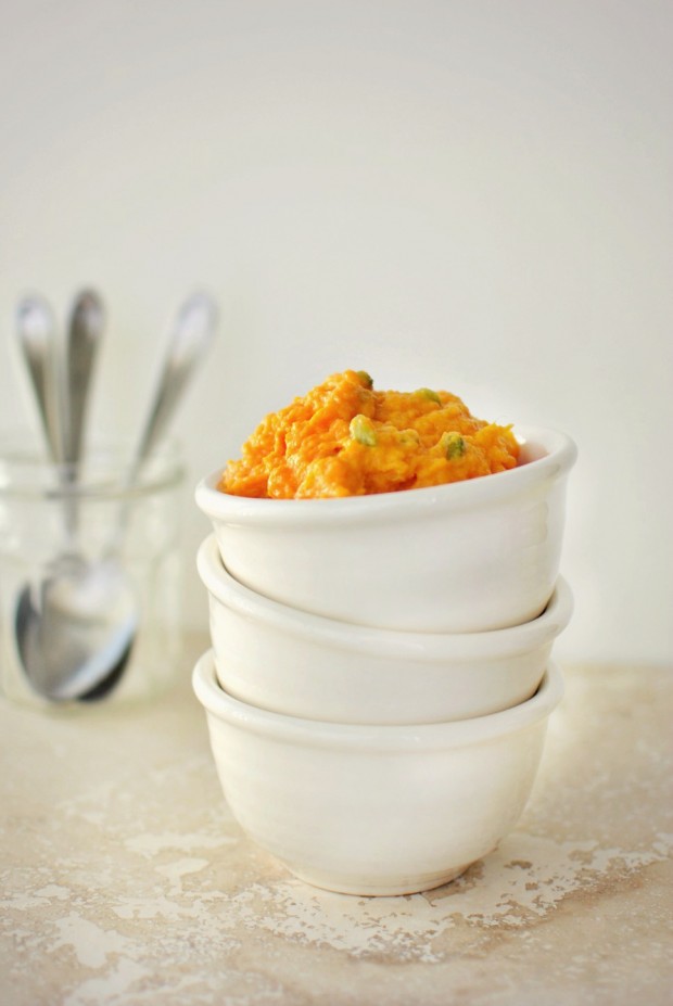 It’s kind of hard making an orange mash speckled with green look good. So I didn’t even try. I just plopped it into a bowl and there it was.